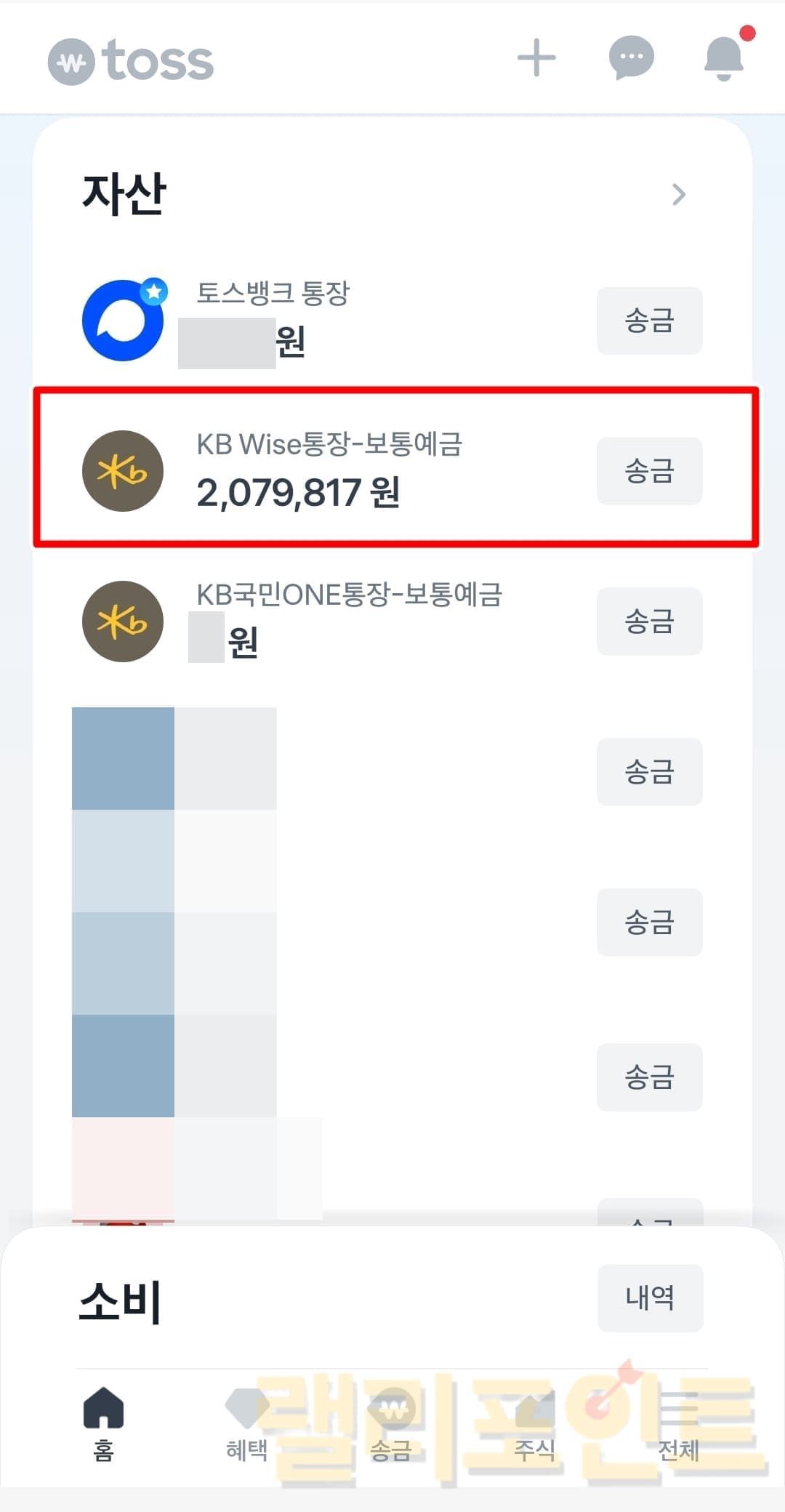 2. 잔액을 숨기고 싶은 계좌를 클릭합니다.