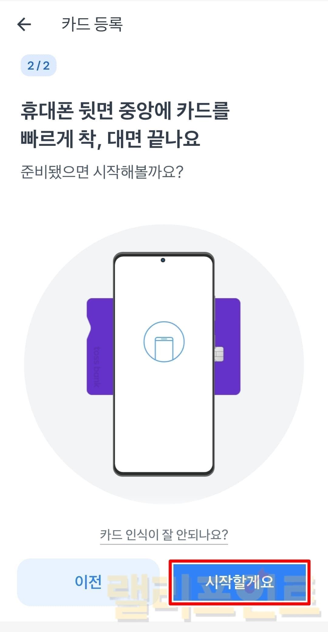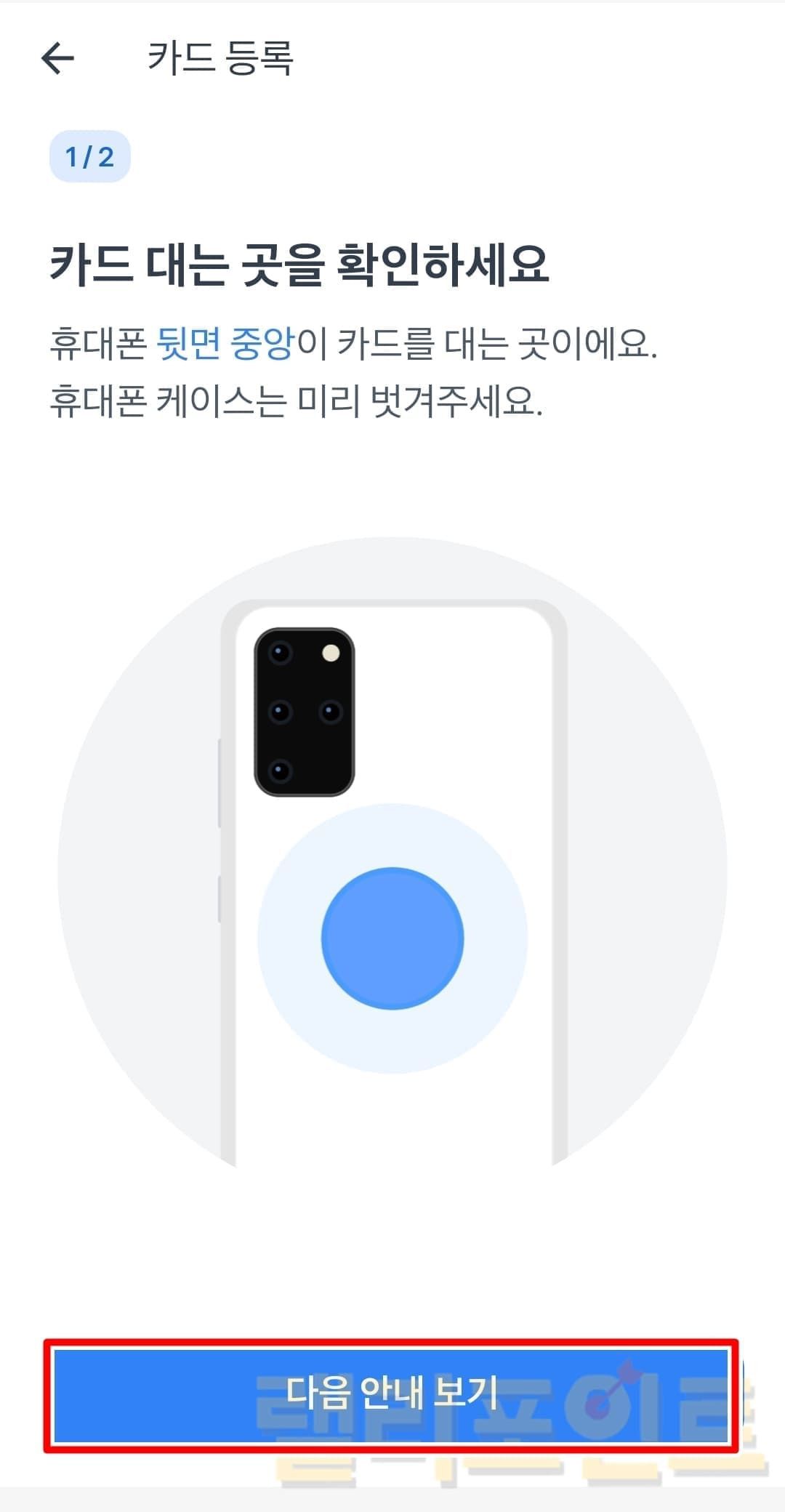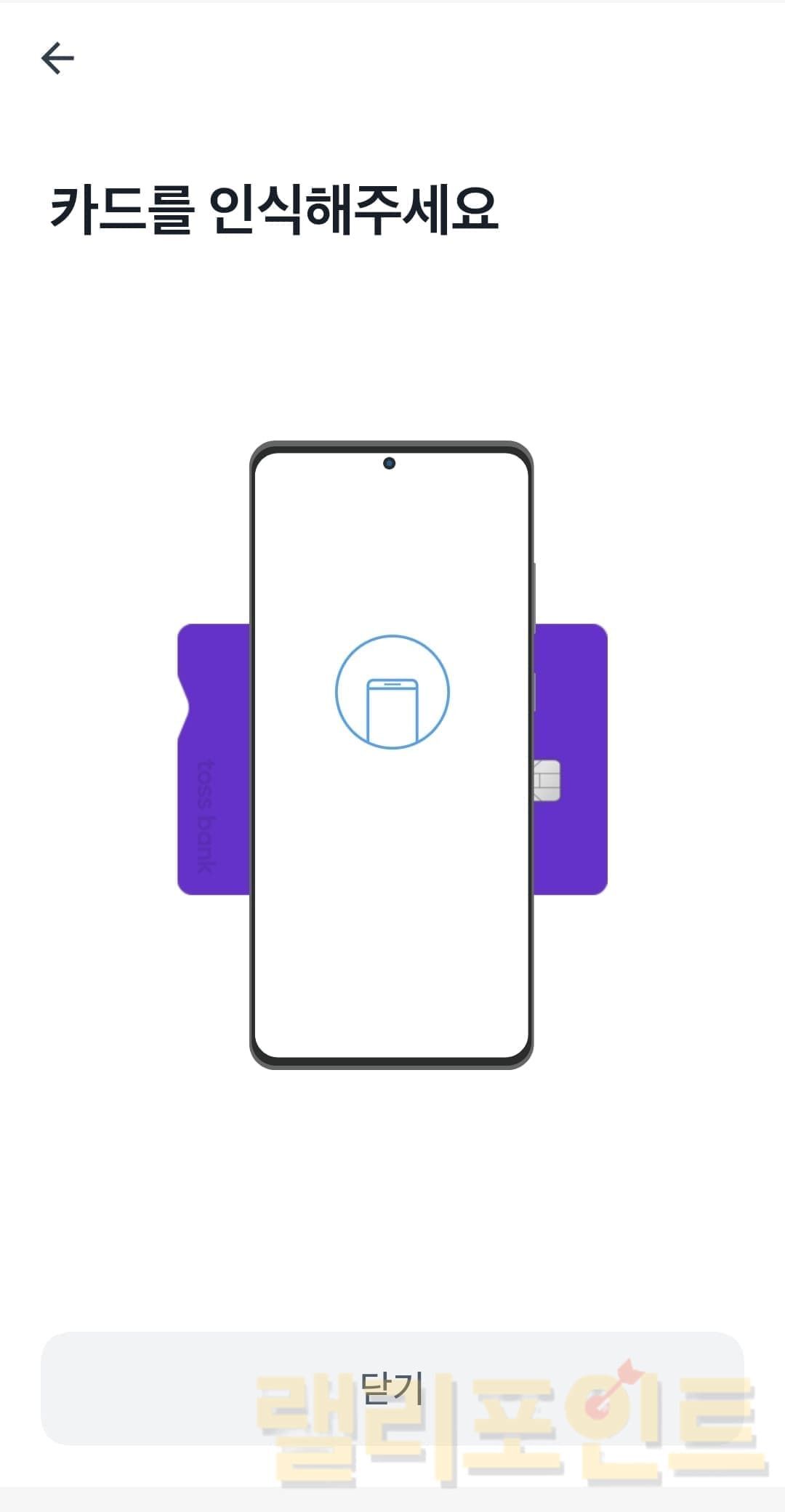 - 휴대폰 뒷면 중앙에 토스 카드를 인식합니다.