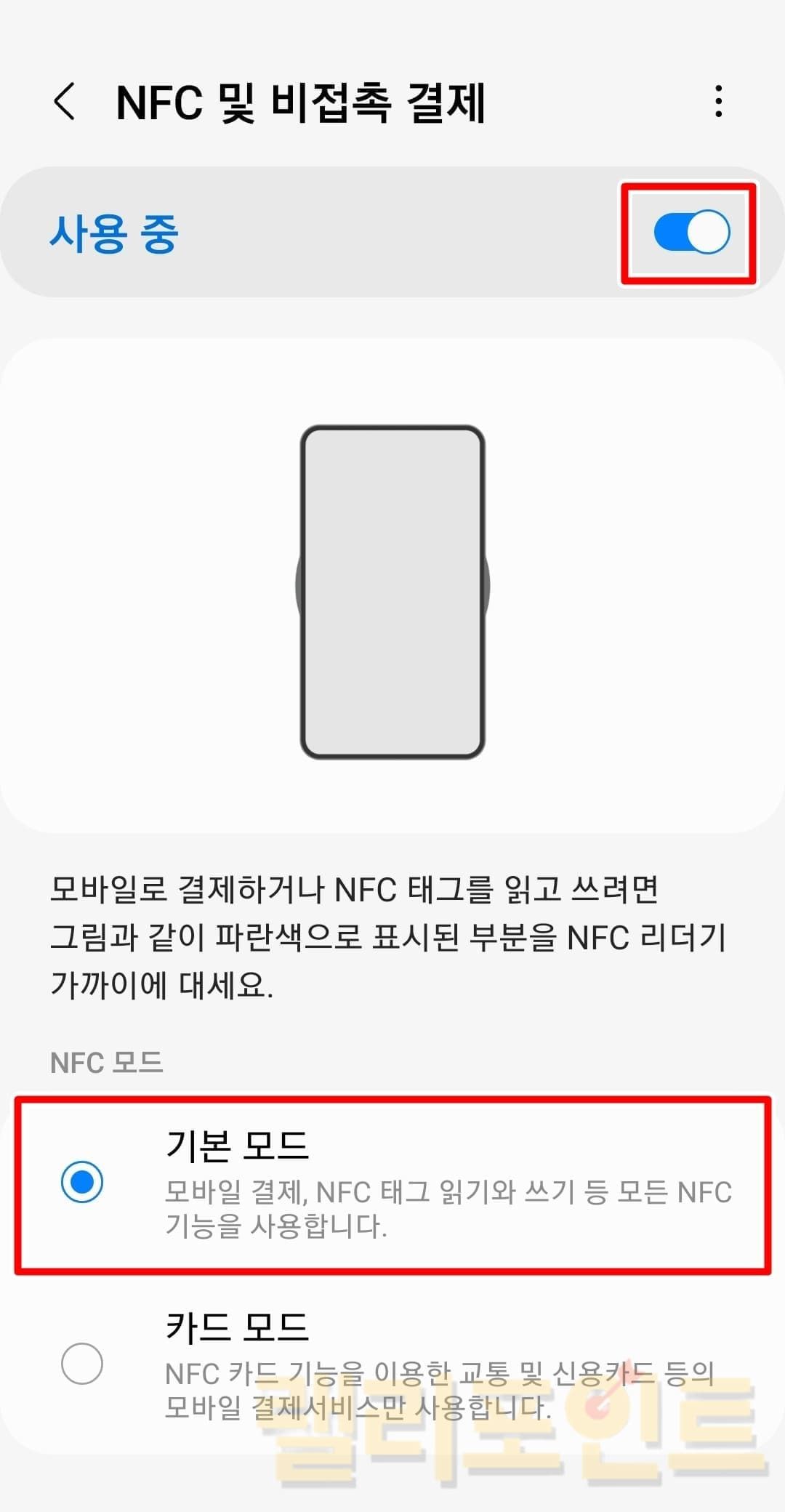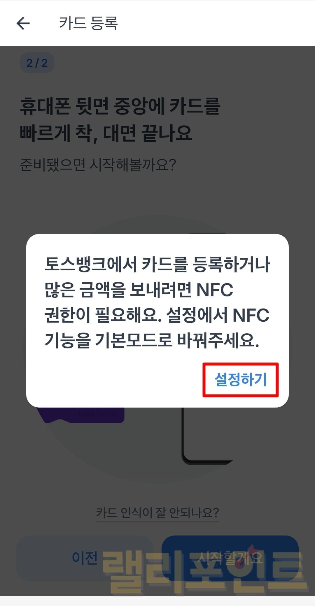 - NFC 팝업에서 설정하기를 클릭합니다.