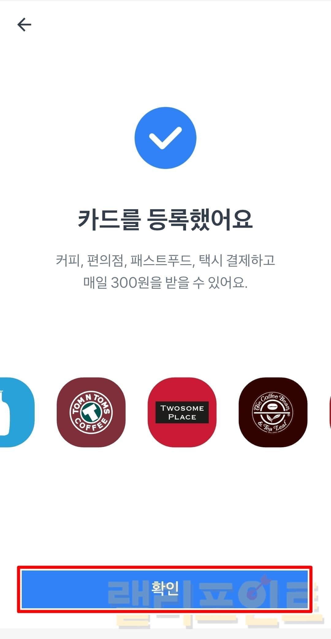 배송 완료 후 카드등록하기 배너를 클릭합니다.