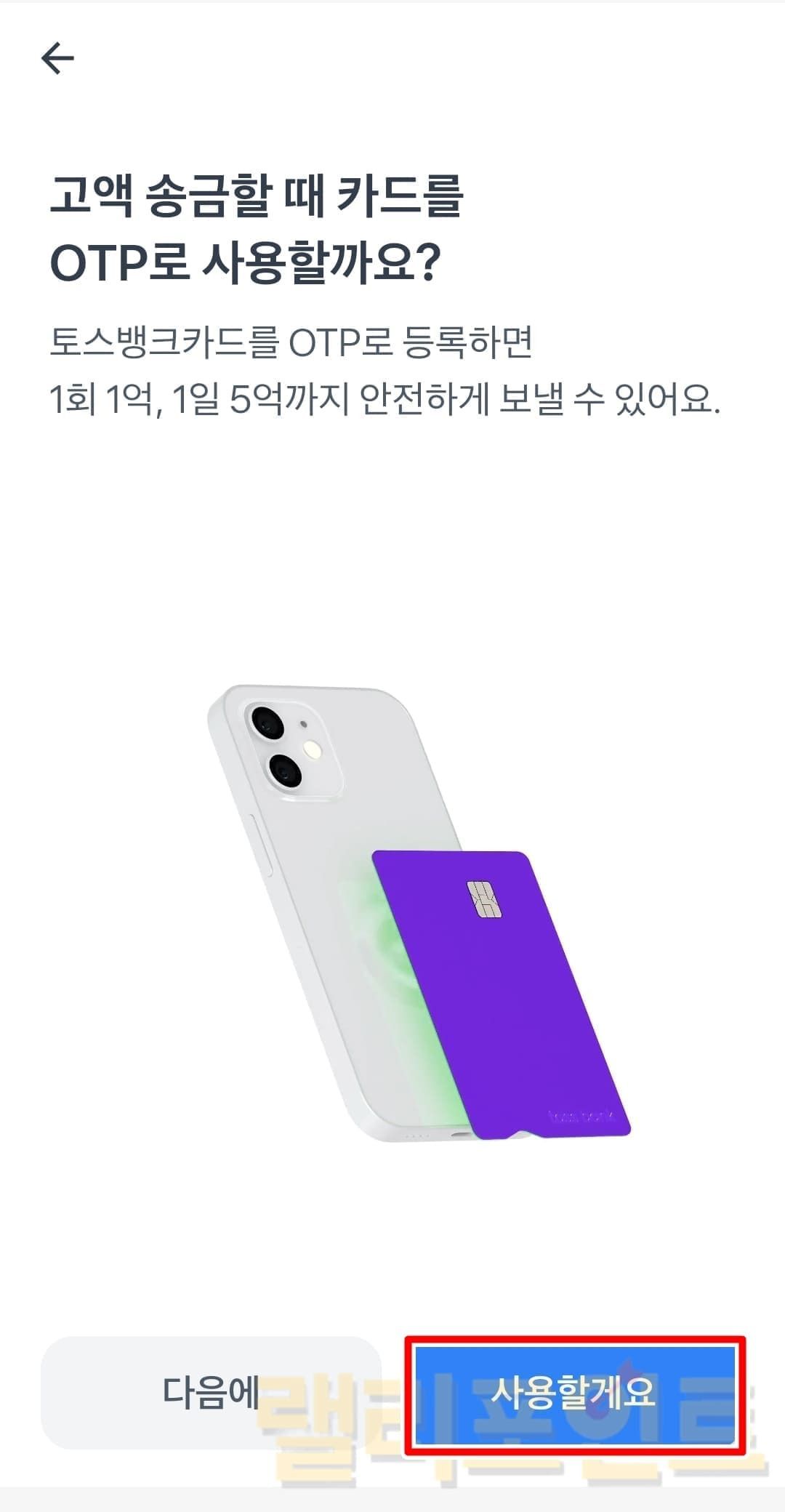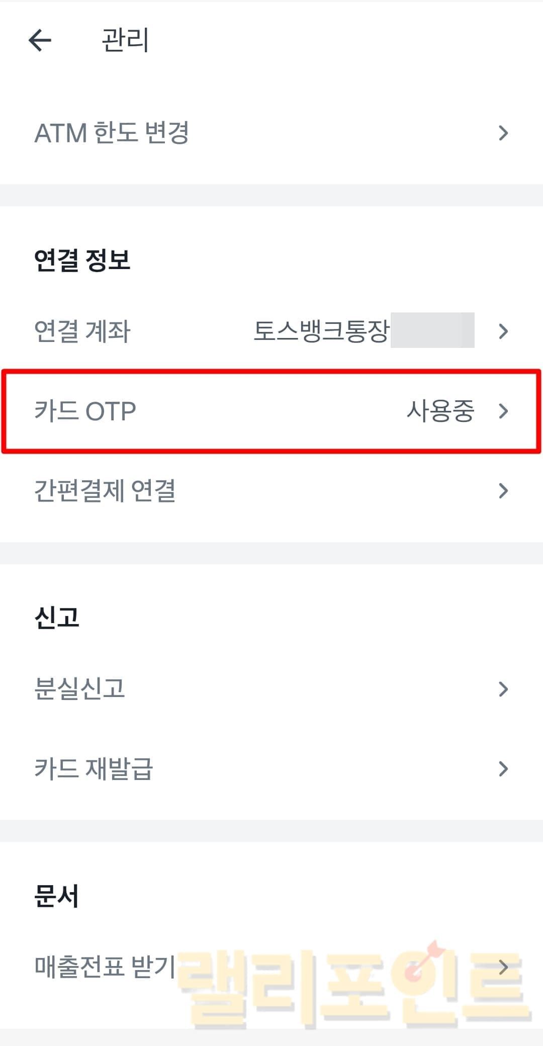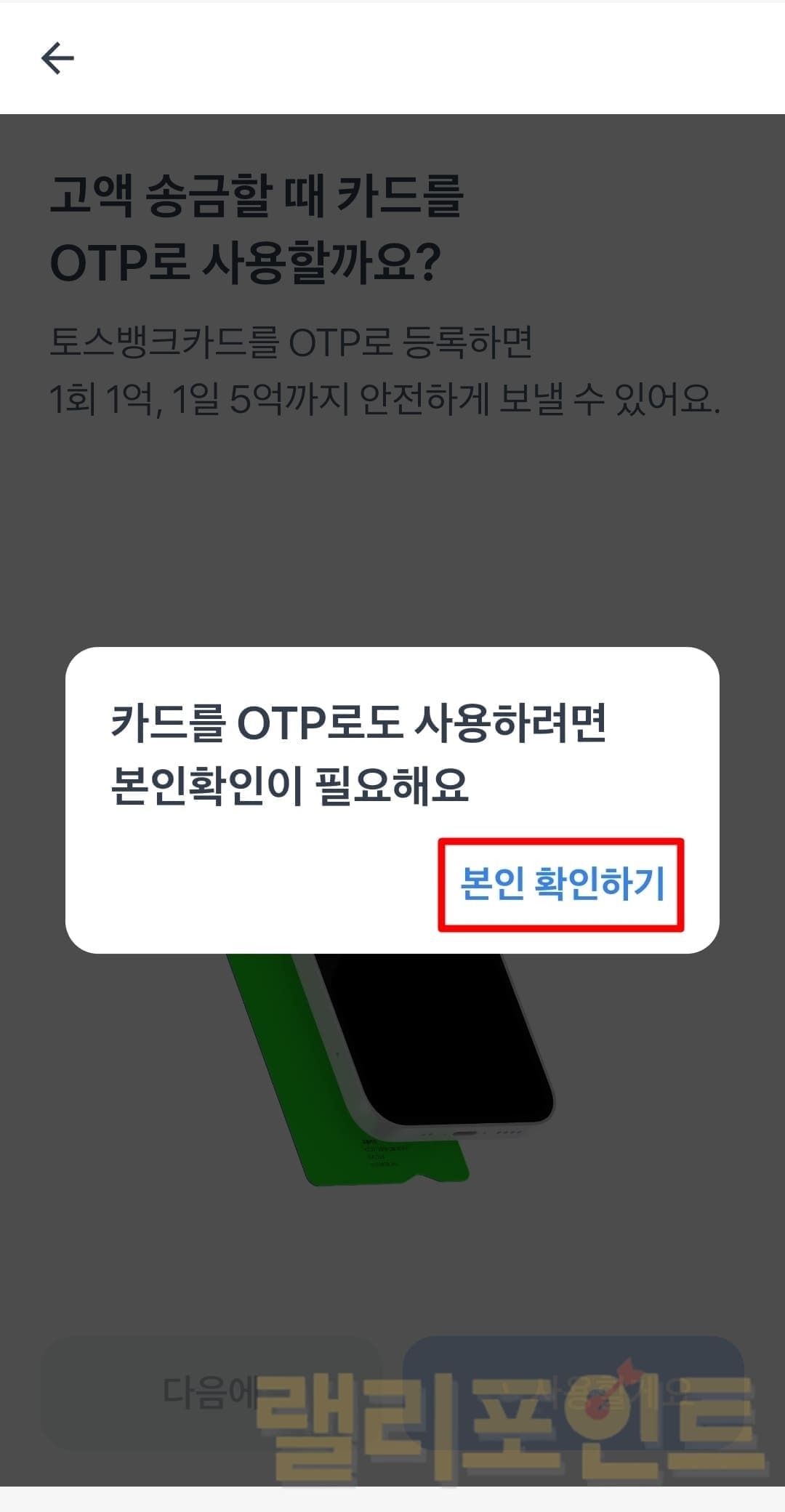 토스 앱에서 토스카드 OTP 설정하는 방법