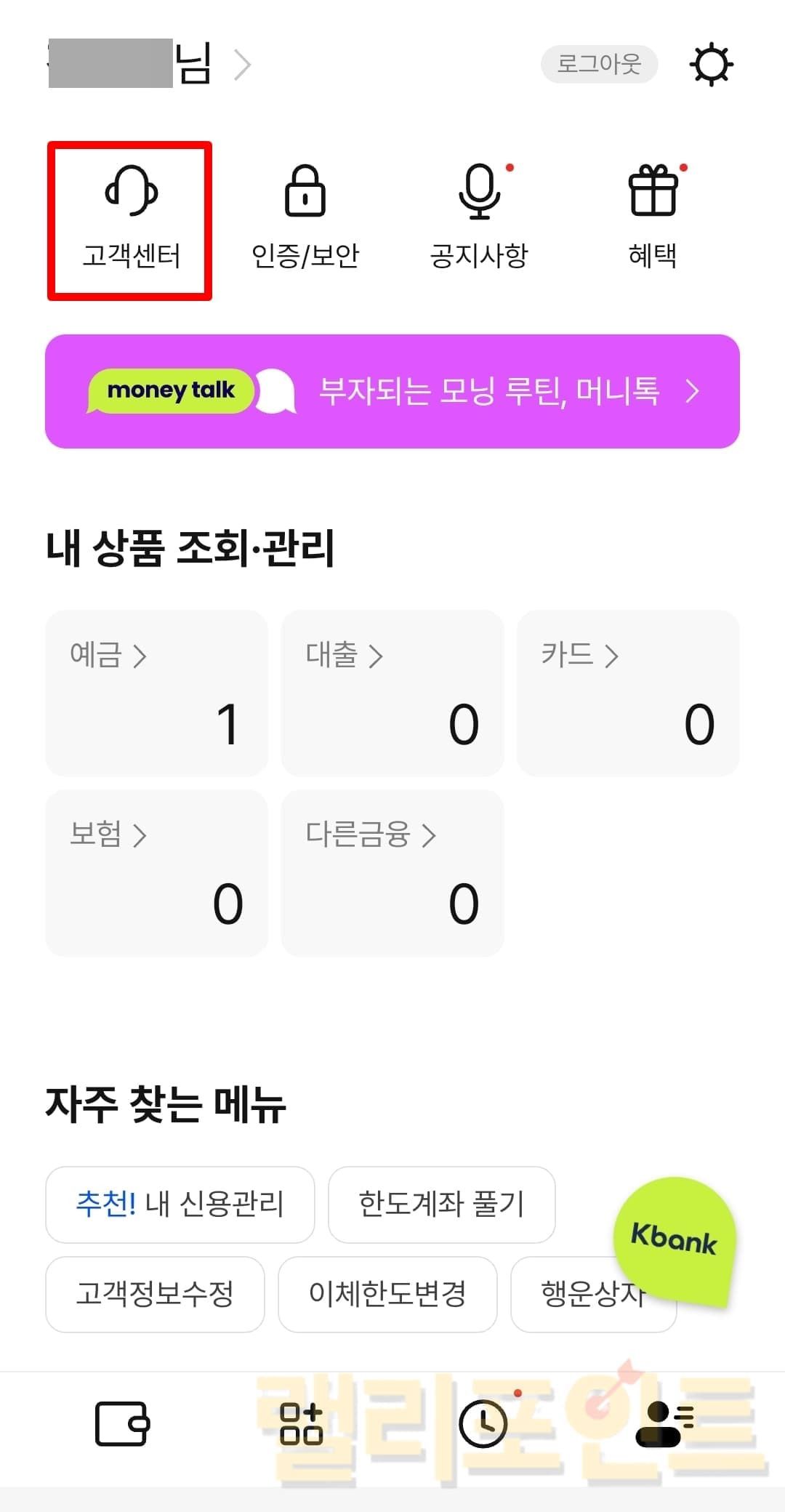 1. 고객센터를 클릭합니다.