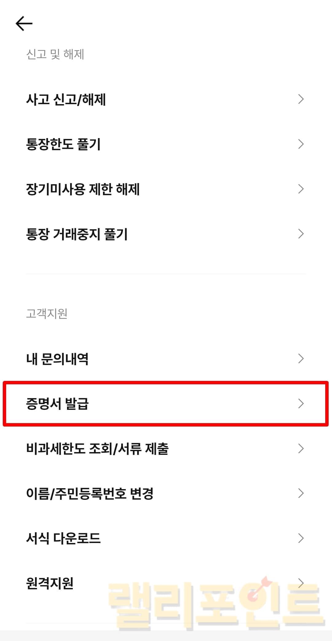 1. 고객지원에서 증명서 발급을 누릅니다.