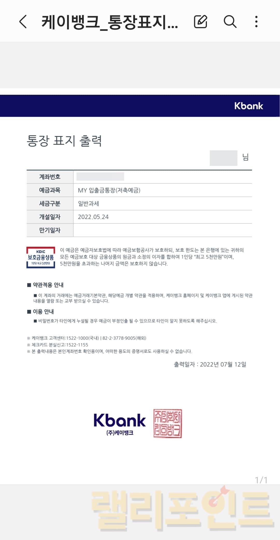 케이뱅크 통장사본 주의사항