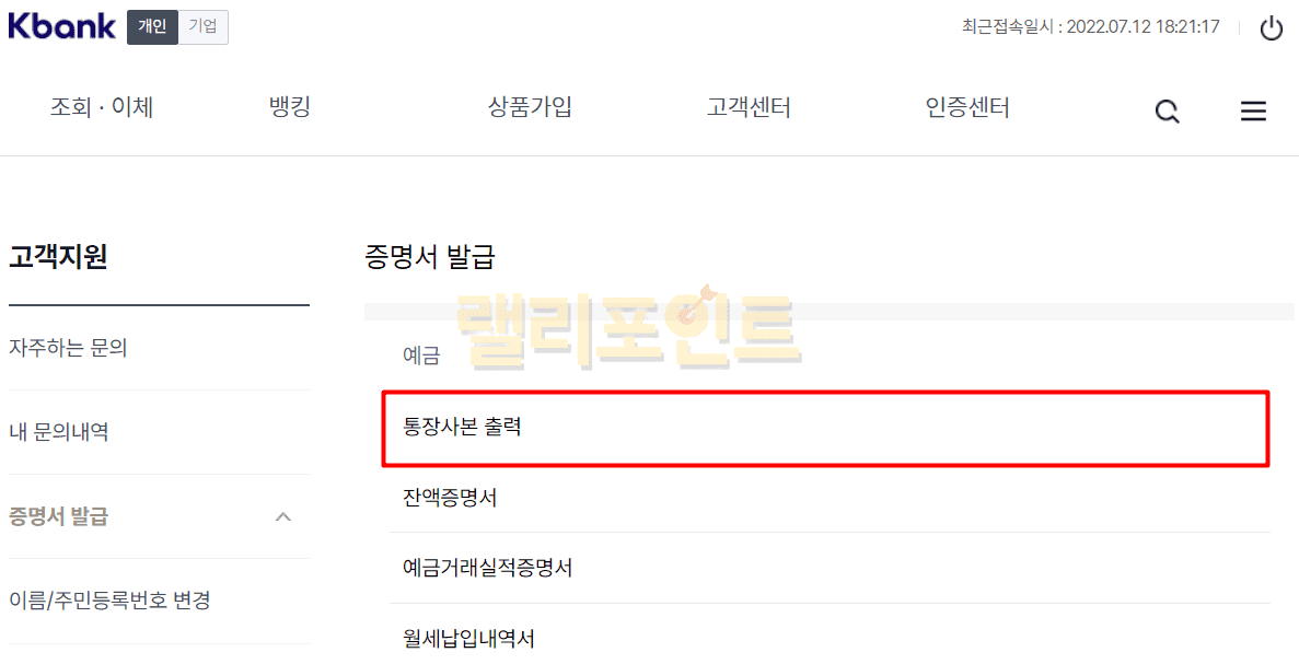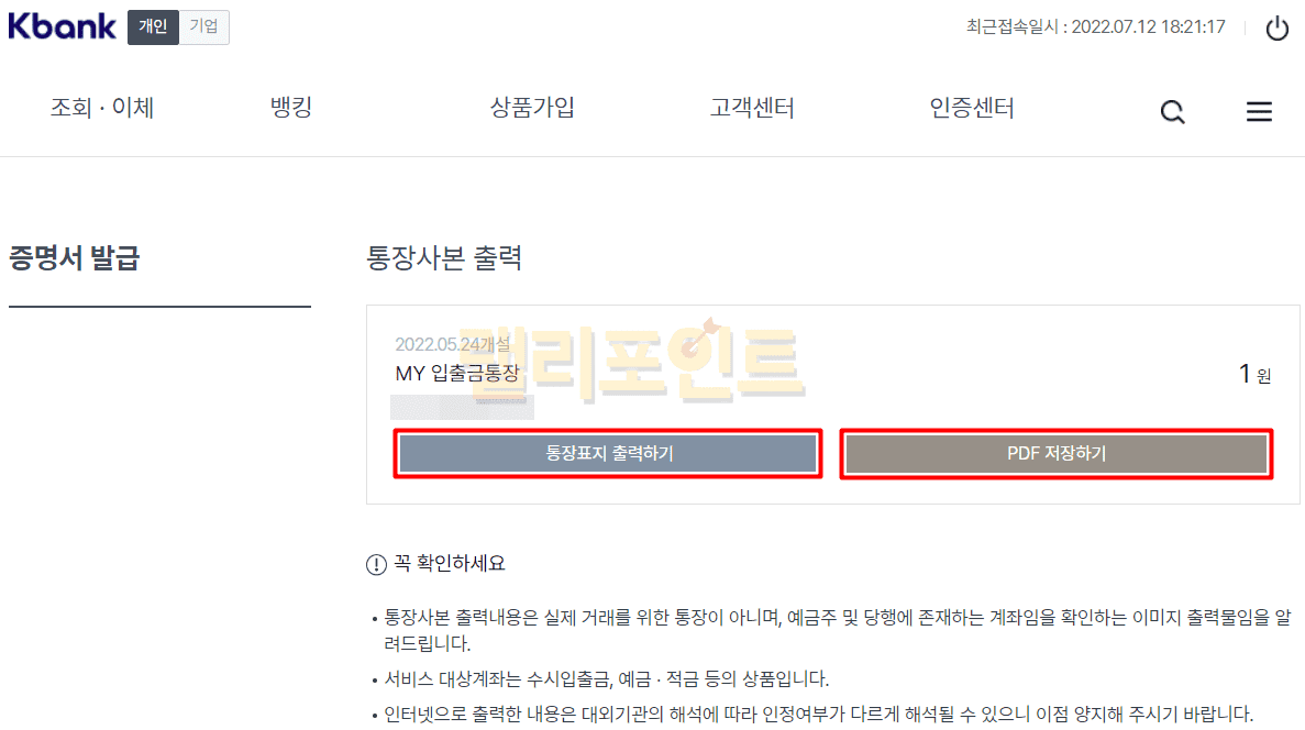 2. PC에서 케이뱅크 통장사본 출력 방법