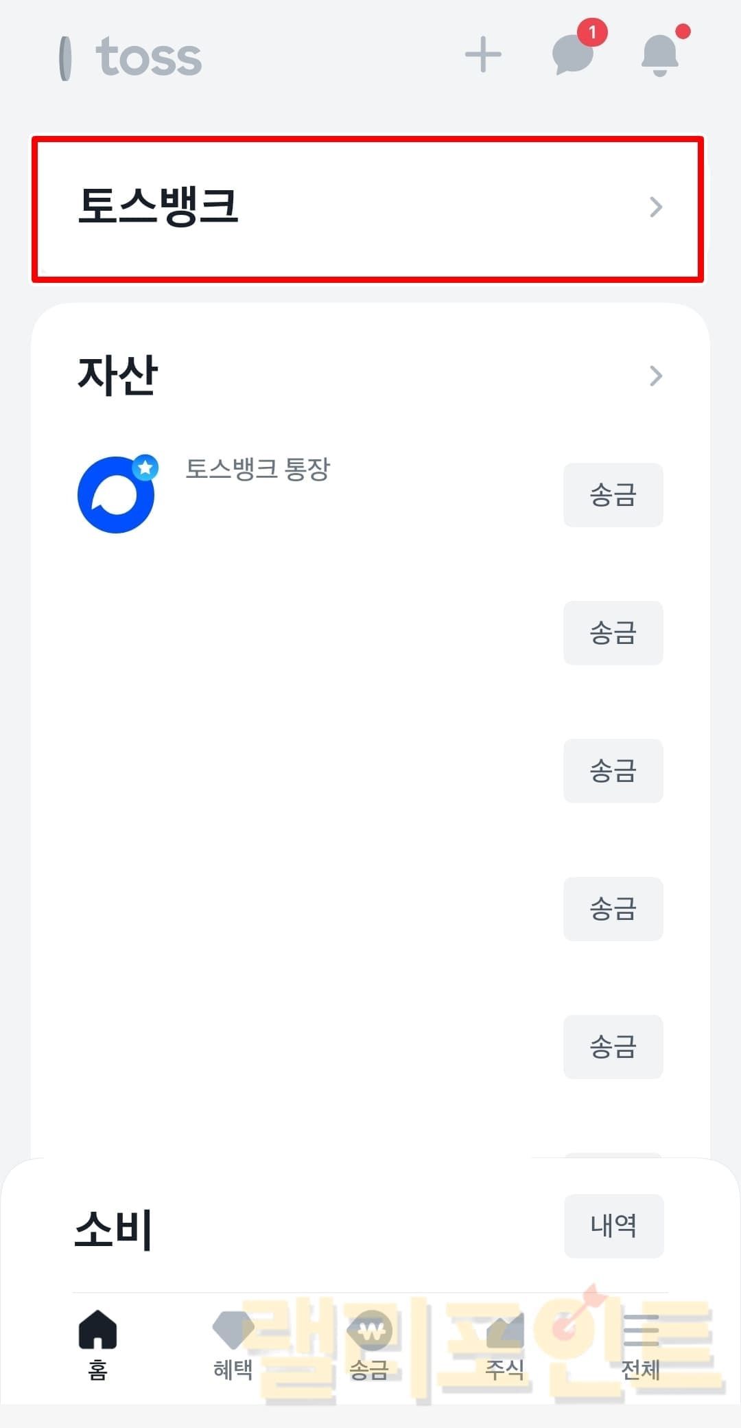 1. 스마트폰에서 토스 어플을 실행합니다.
