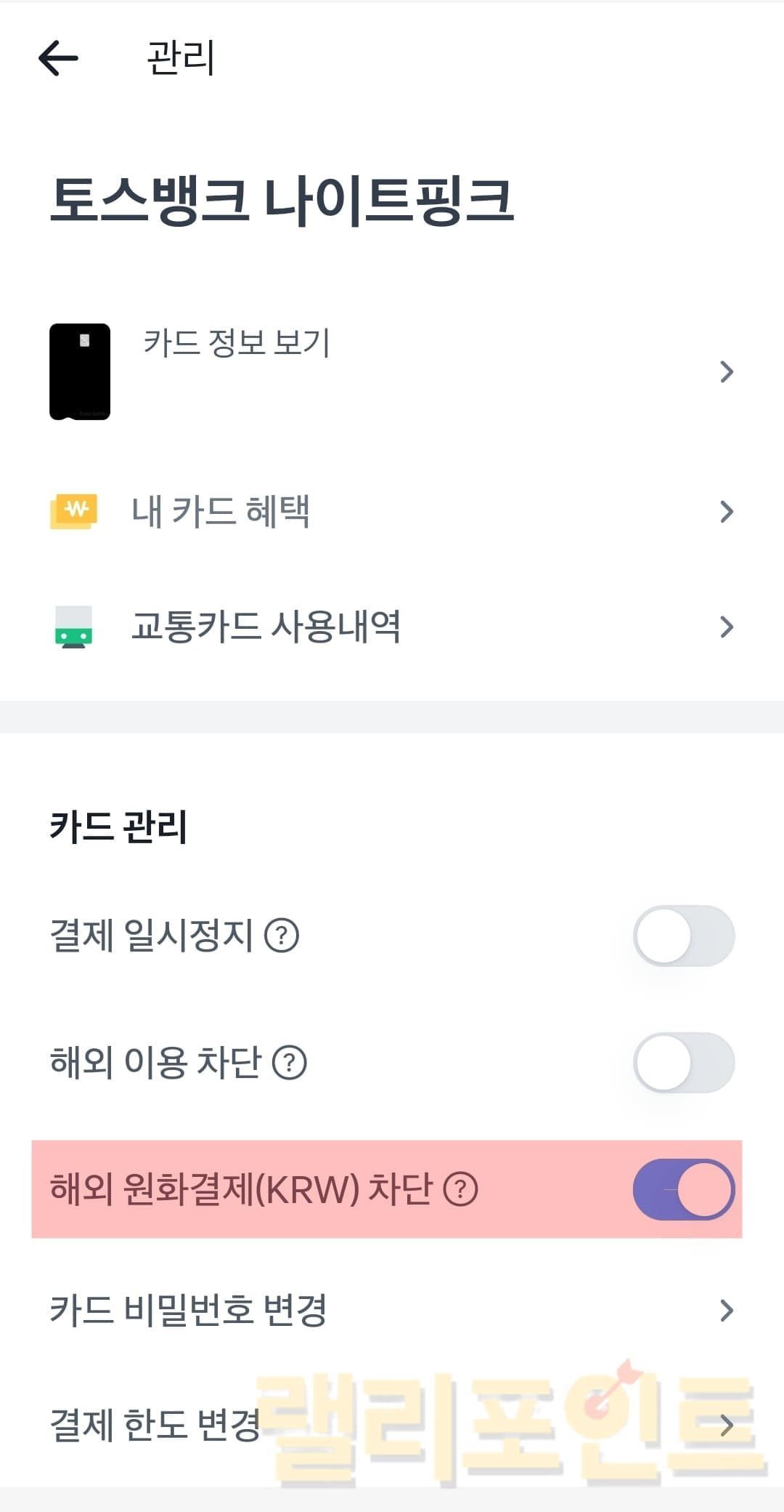 1. 해외 원화결제(KRW) 차단을 활성화합니다.