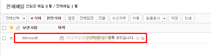 - 학교 이메일로 접속하여 마이크로소프트 이메일을 클릭합니다.