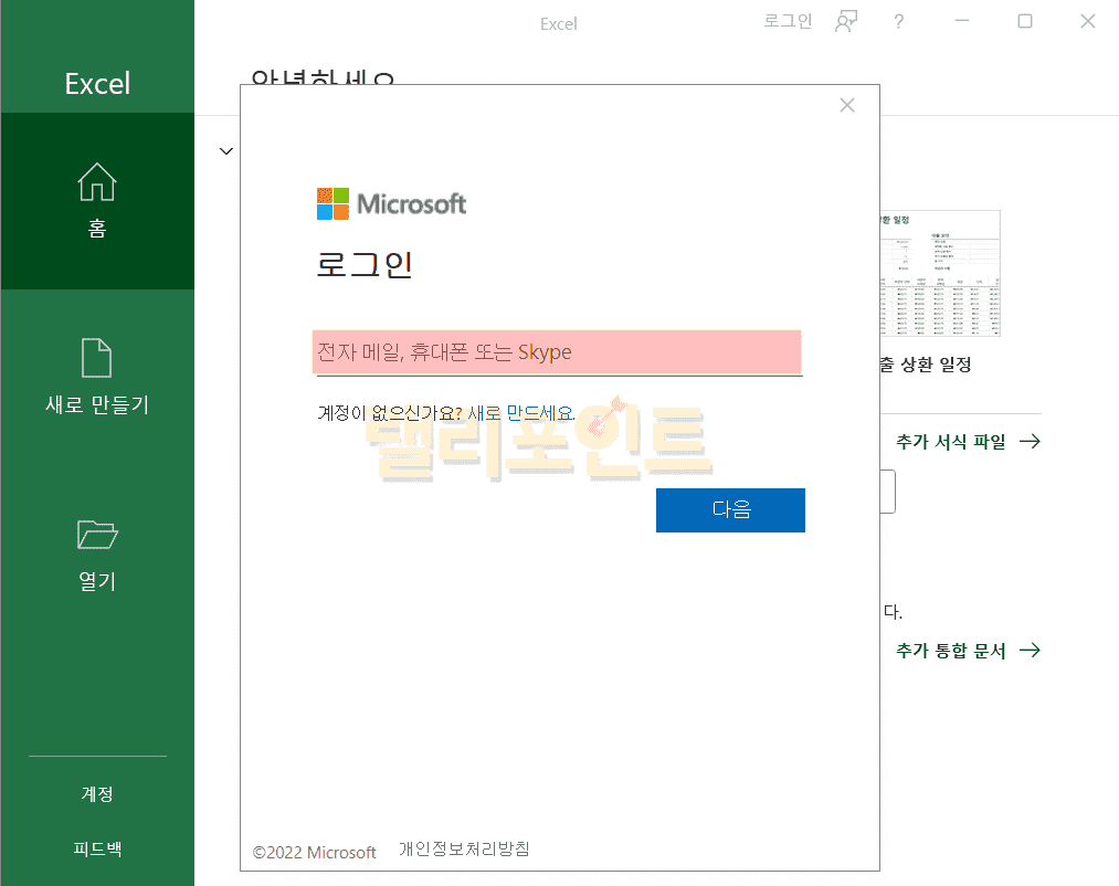MS오피스 프로그램 중 아무것이나 실행합니다.