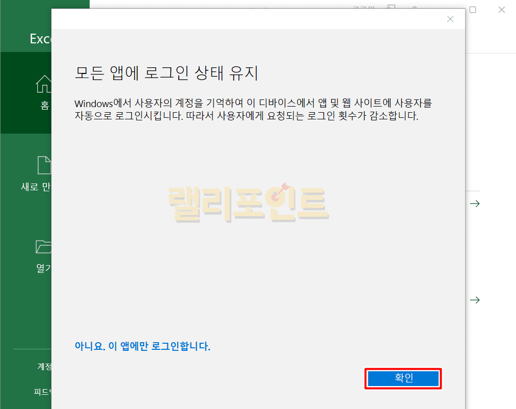 - 모든 앱 로그인 상태 유지에 확인을 누릅니다.