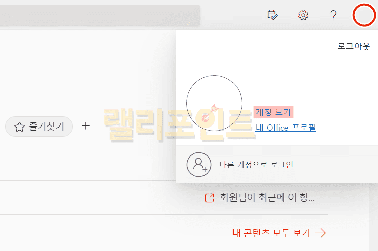 마이크로소프트 사이트 로그인 후 프로필을 클릭합니다.