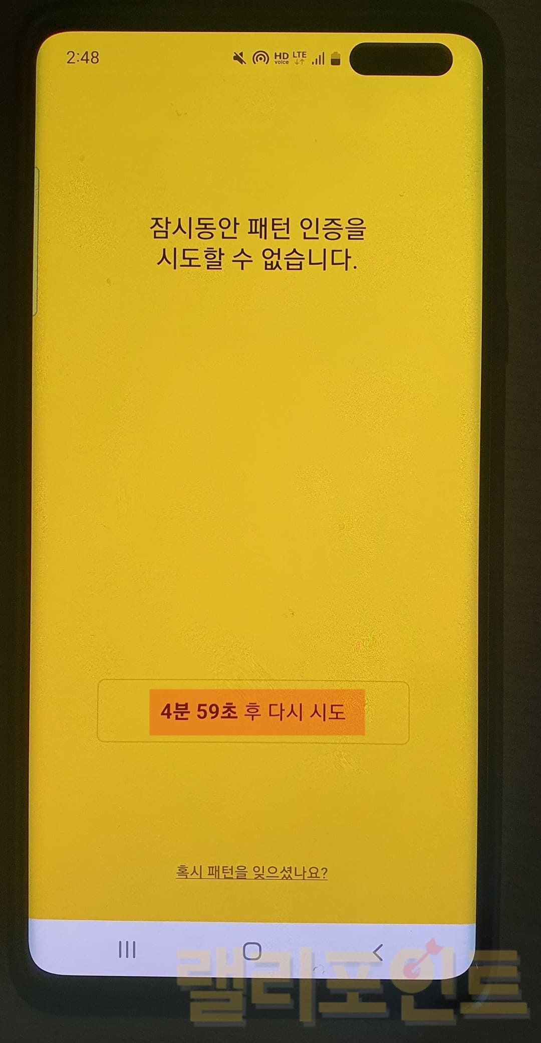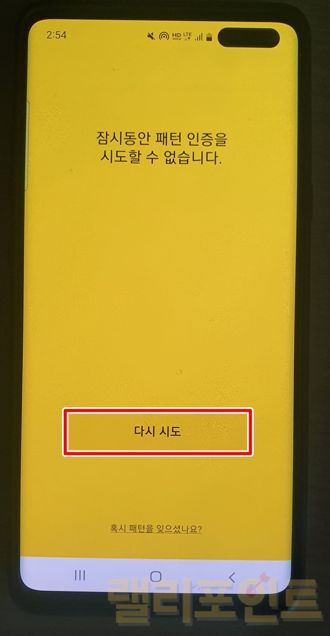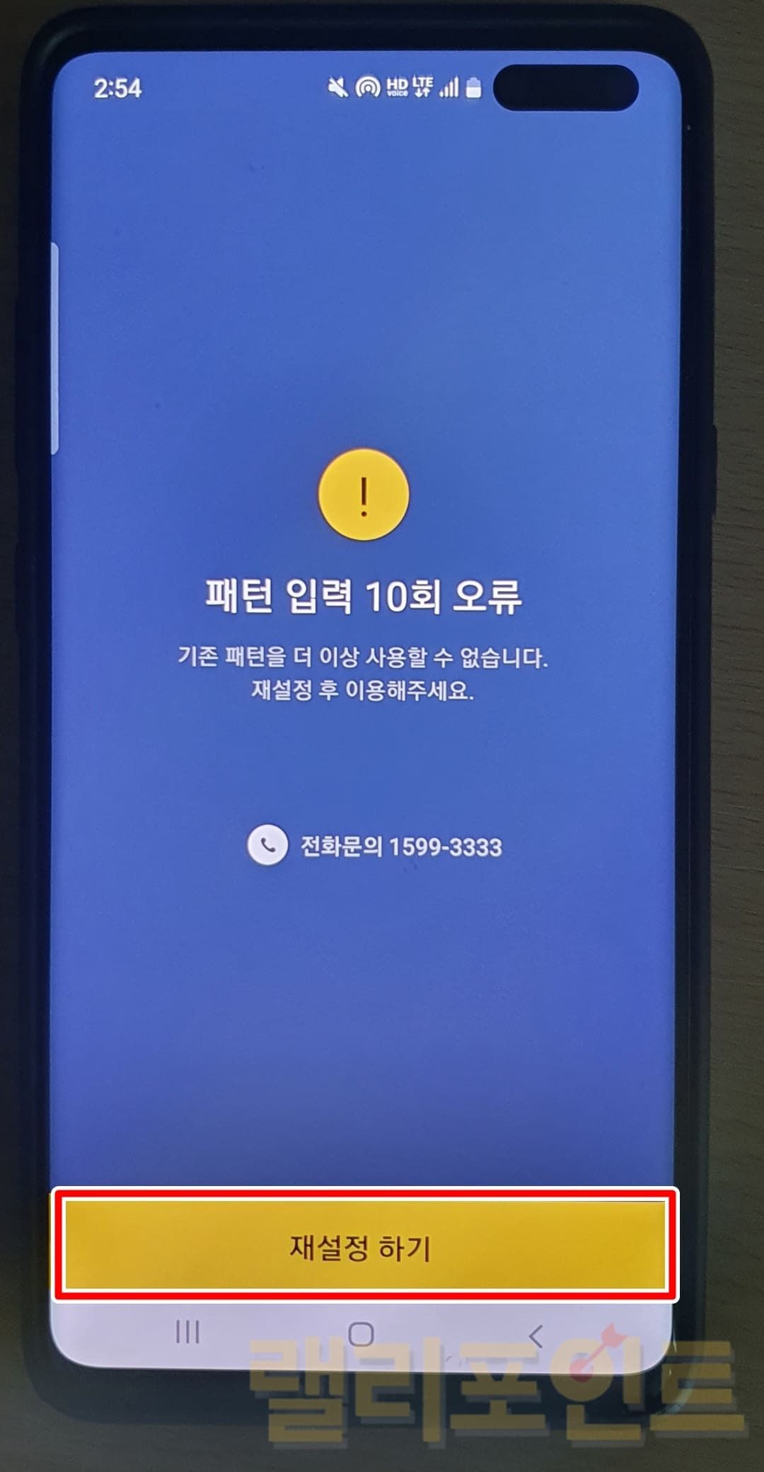 - 패턴 입력 10회 오류 화면에서 재설정하기를 클릭합니다.