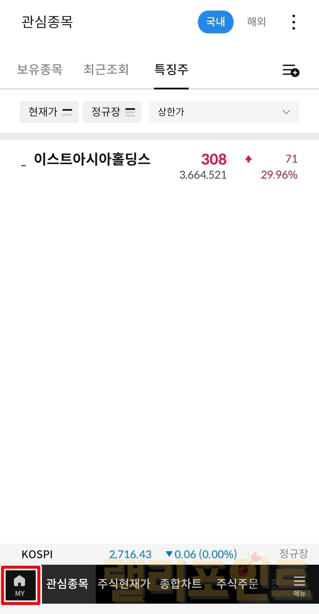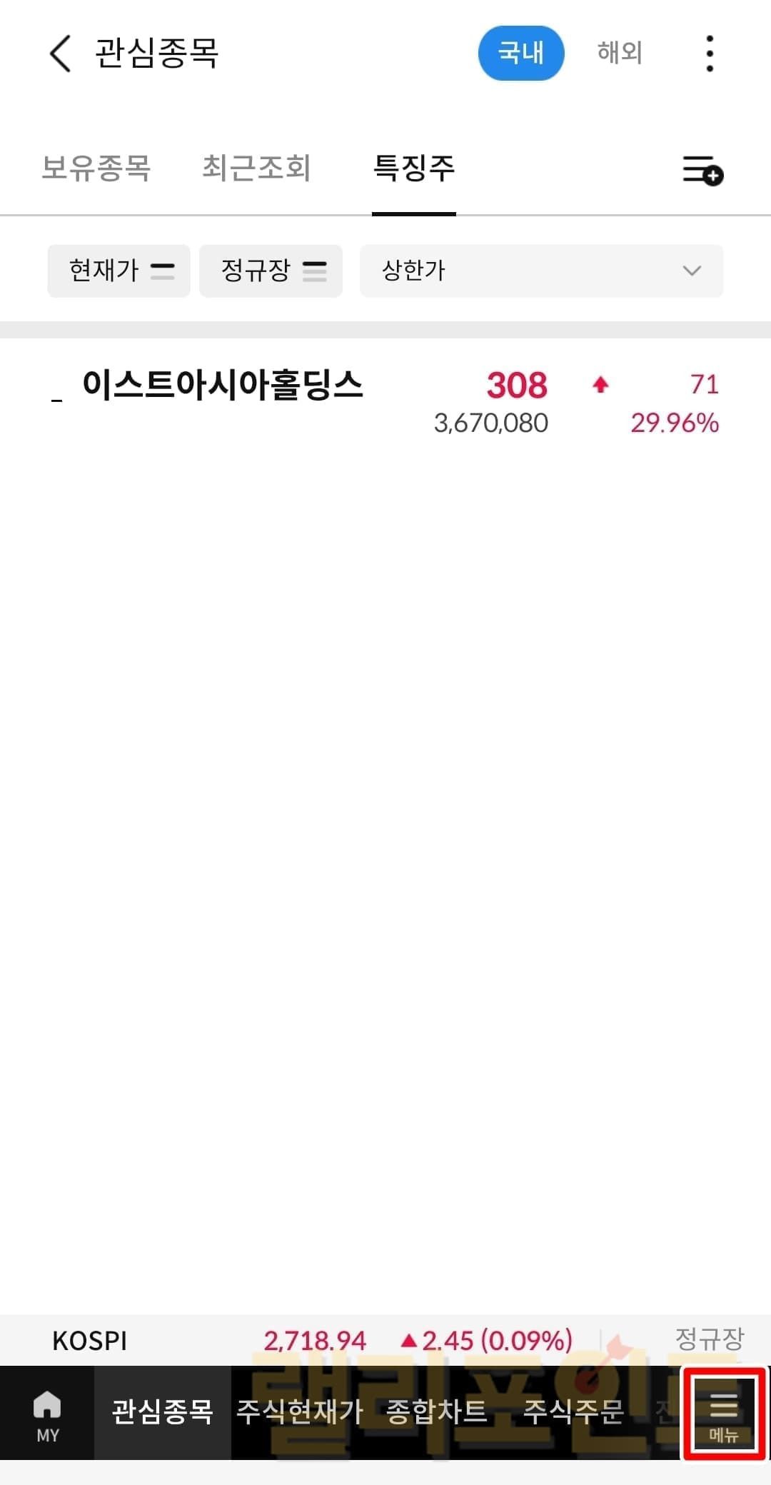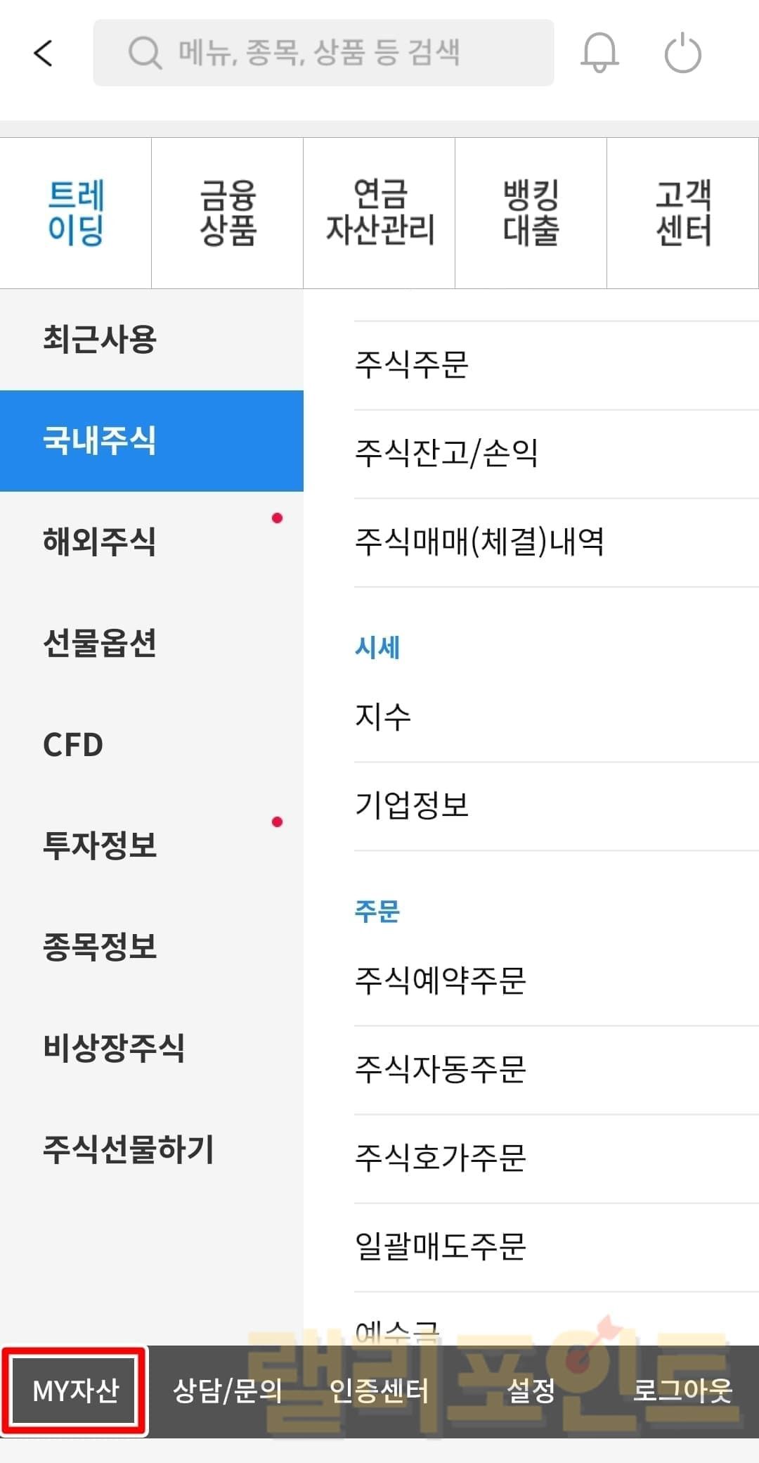 1. 삼성증권 MTS에서 메뉴를 클릭합니다.
