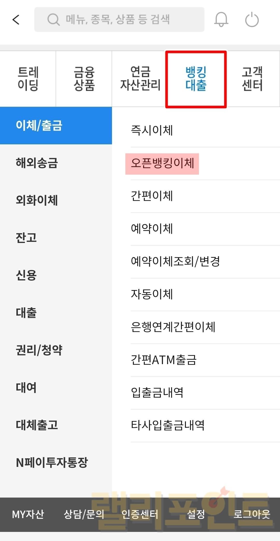 삼성증권 오픈뱅킹 서비스 사용 방법 (타사 계좌 이체 출금)