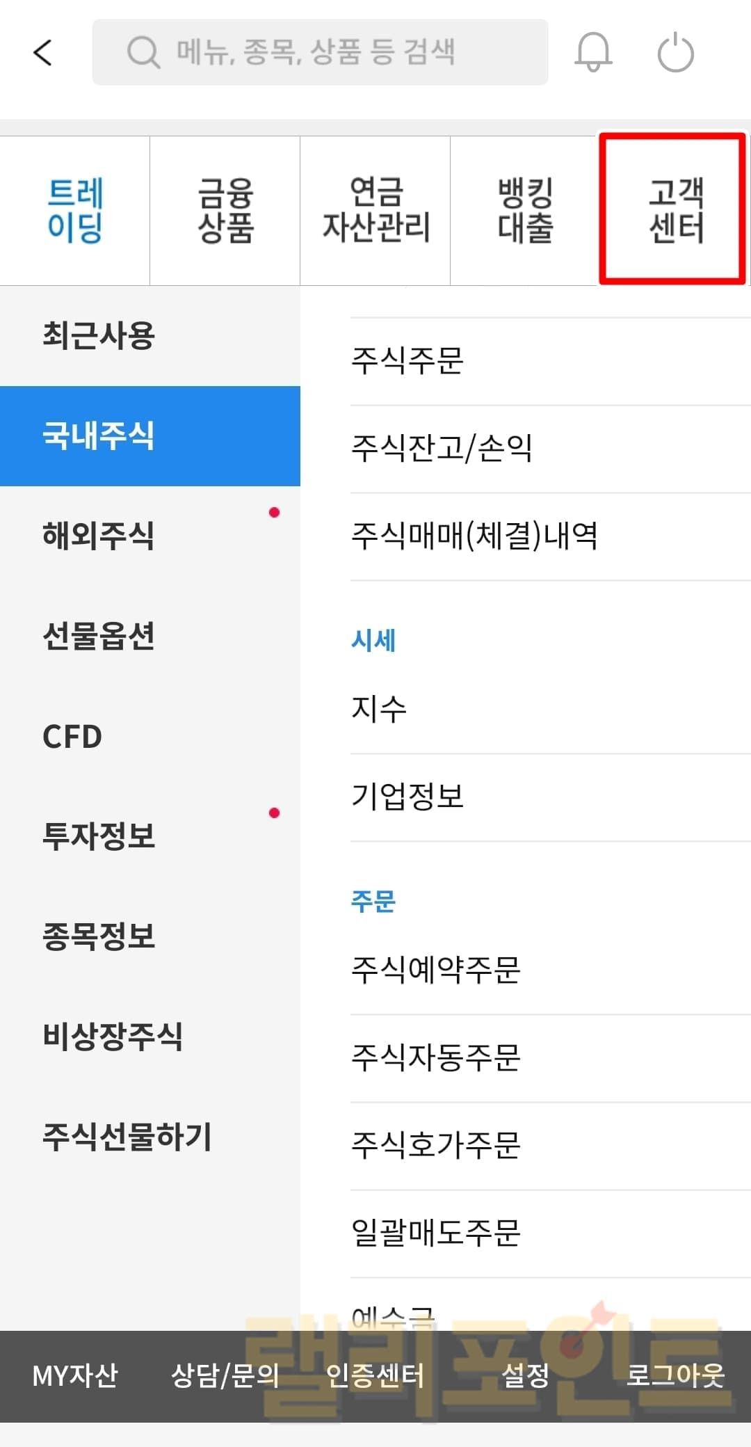 - 고객센터를 누릅니다.