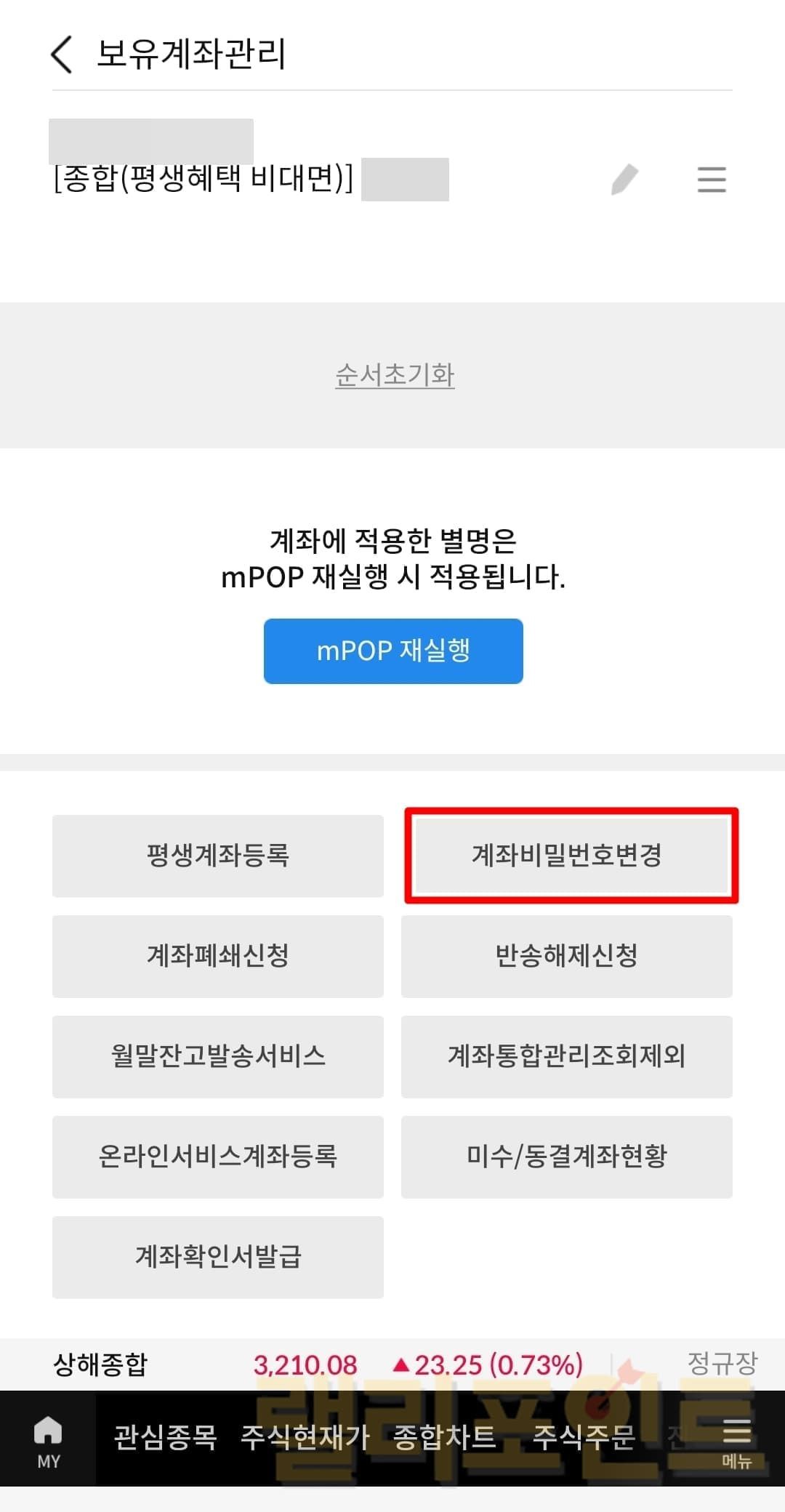 삼성증권 계좌 비밀번호 변경하는 방법 (모바일 MTS)