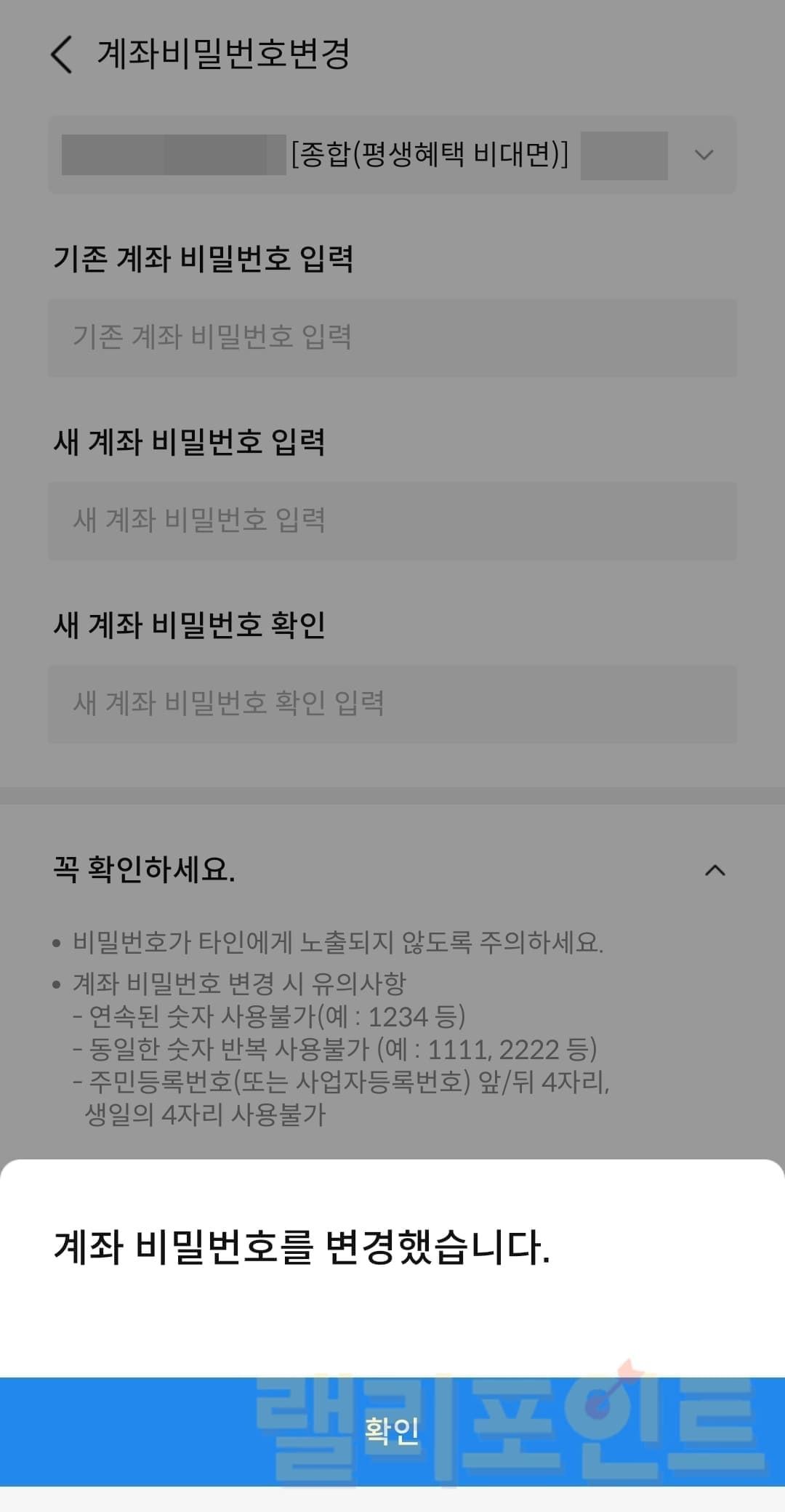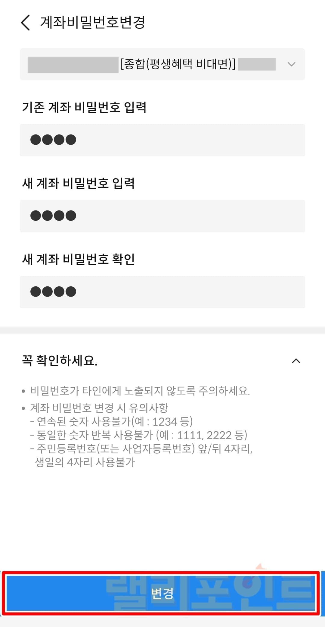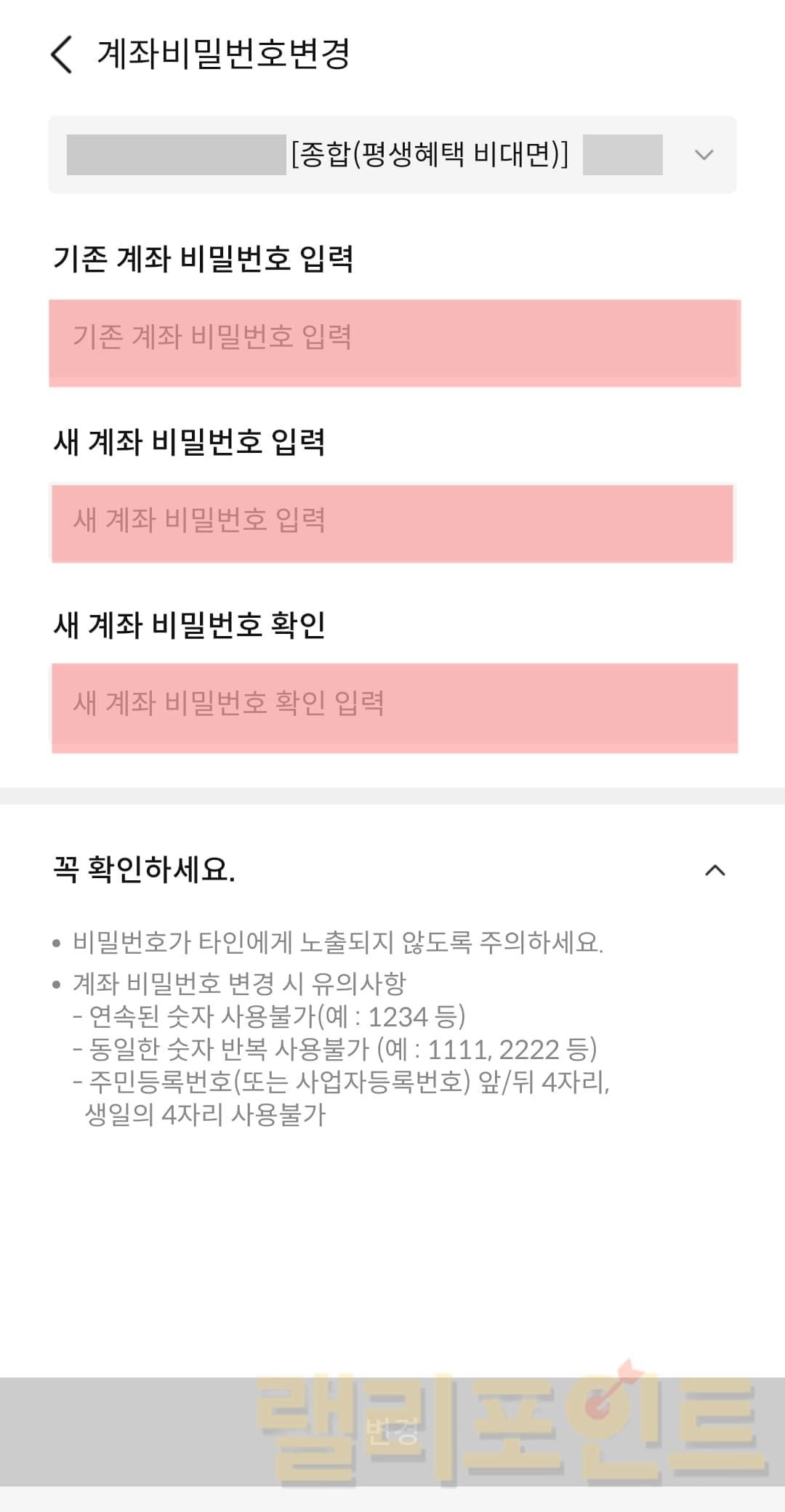- 계좌비밀번호변경을 클릭합니다.