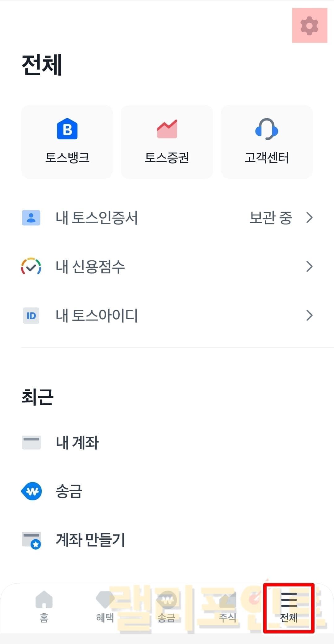 1. 토스 어플에서 전체 메뉴를 클릭합니다.
