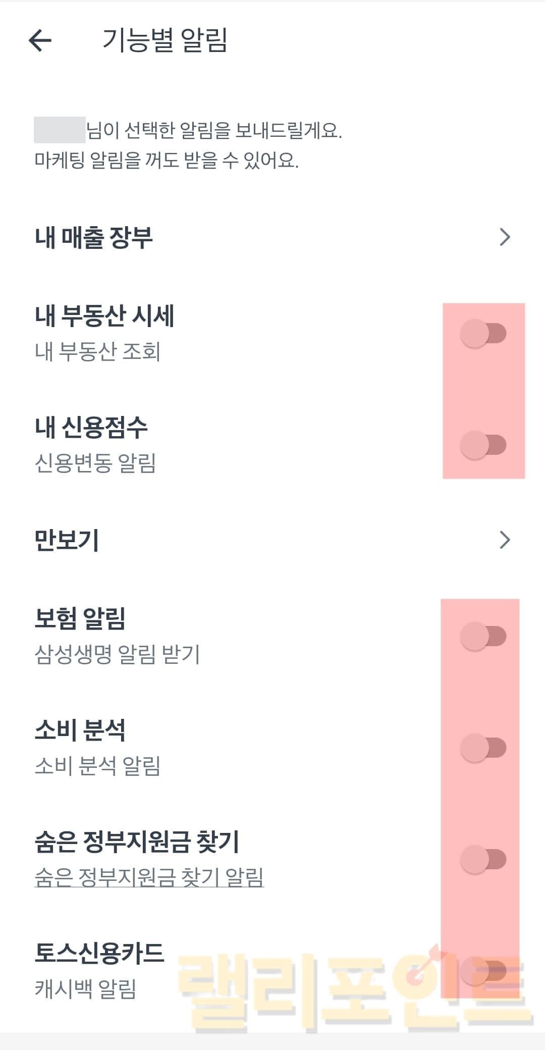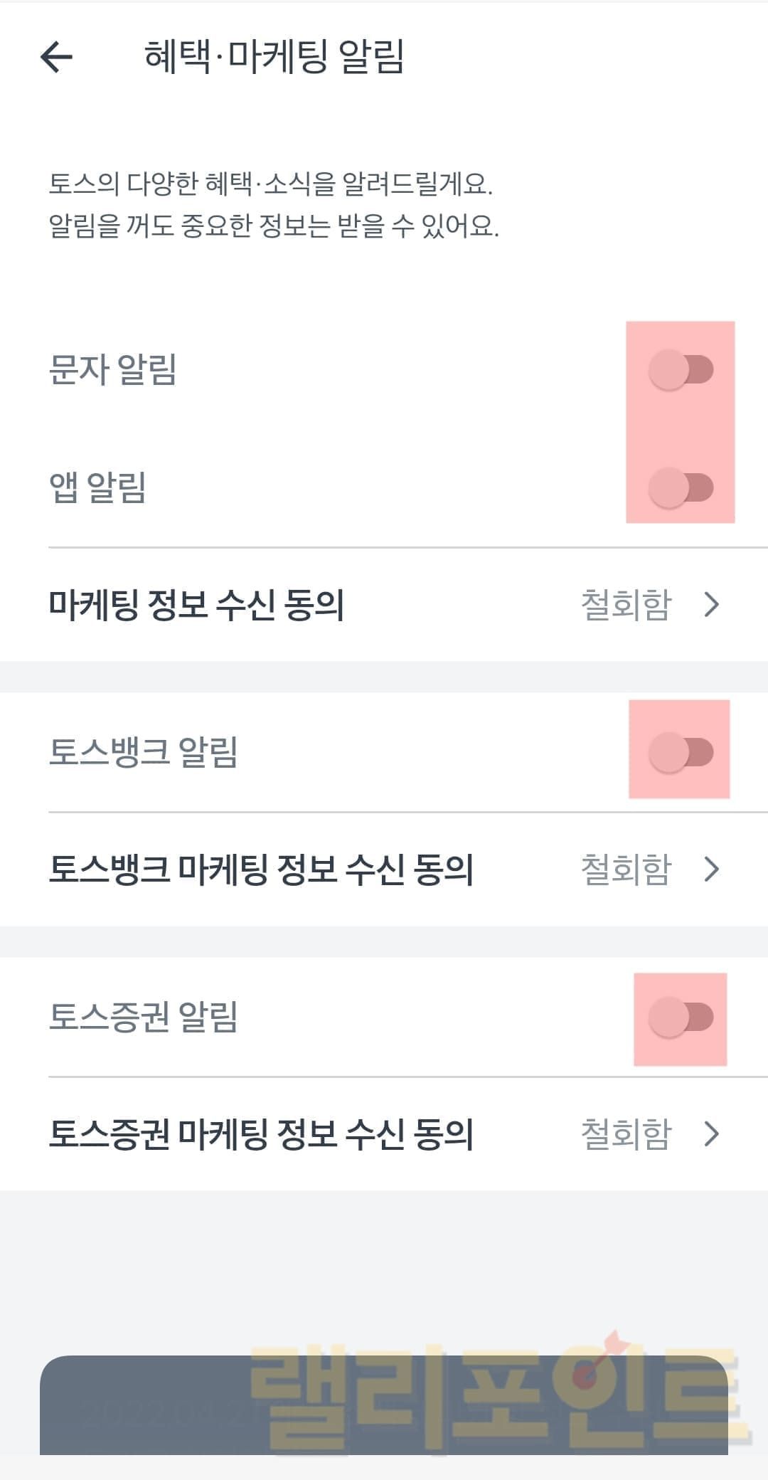 1. 혜택 마케팅에서 알림을 해제합니다.