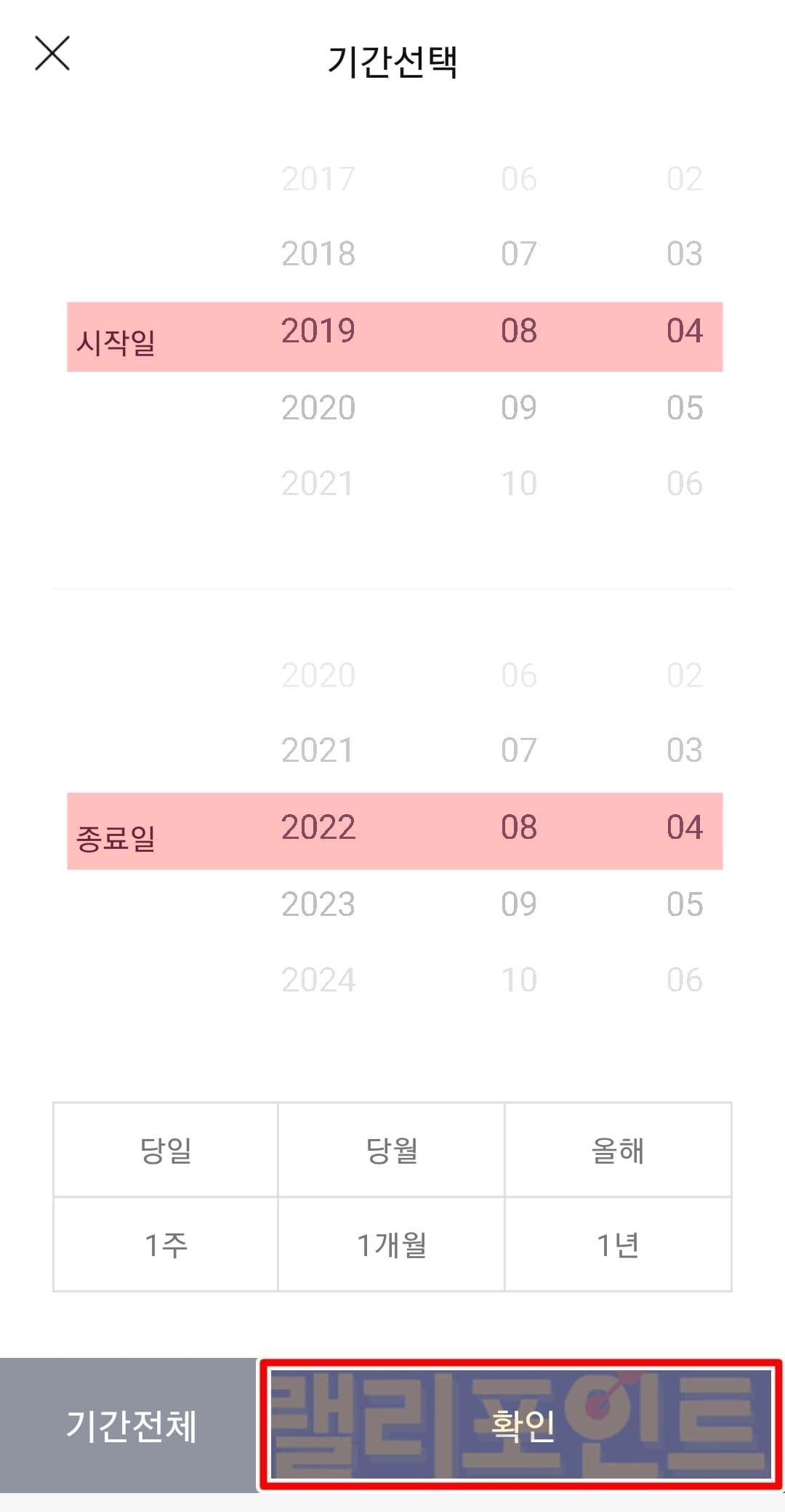 1. 입출금 내역을 보고 싶은 시작일과 종료일을 설정합니다.