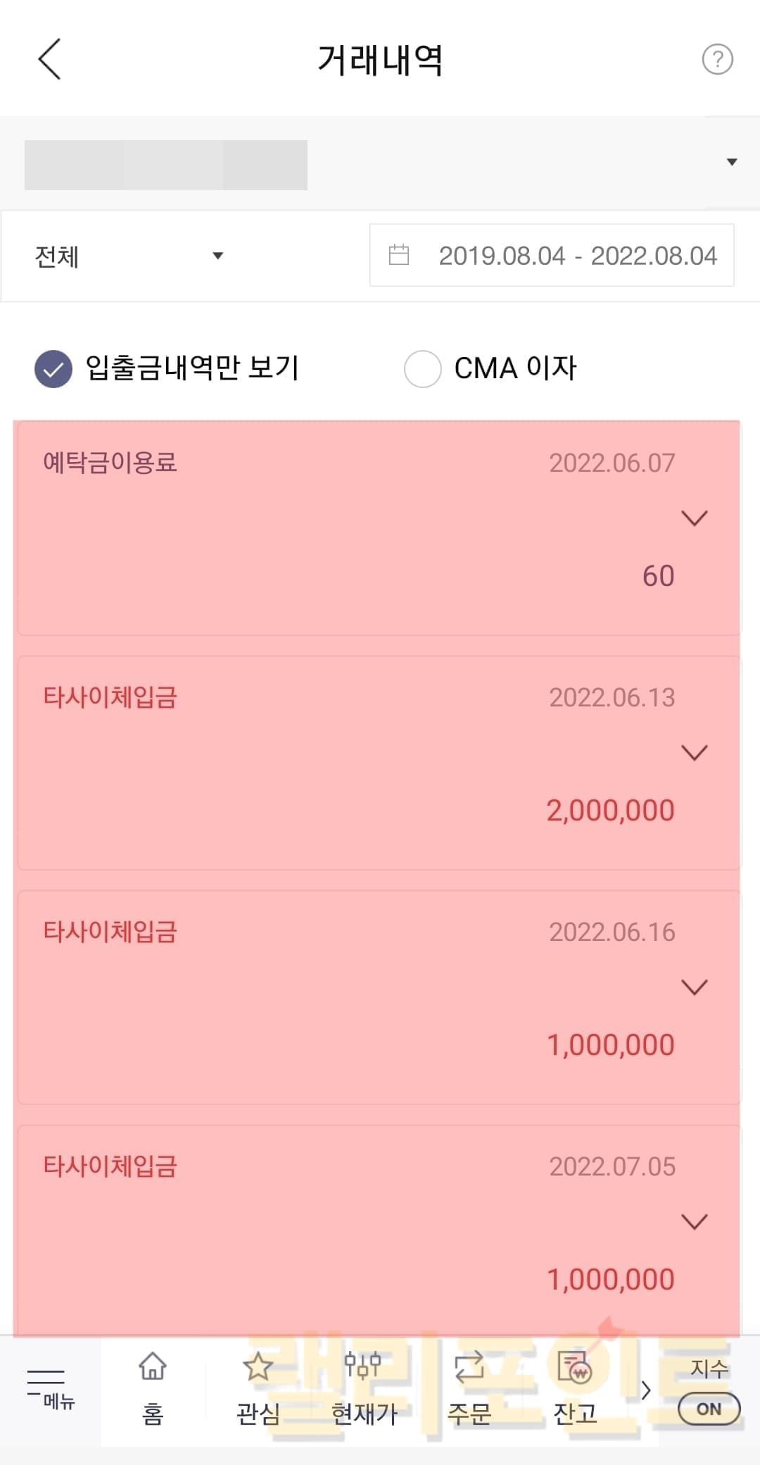 한국투자증권 입출금 내역 확인 방법 (입금, 출금 조회하기)