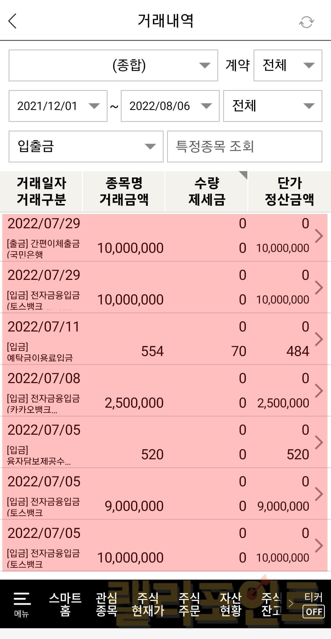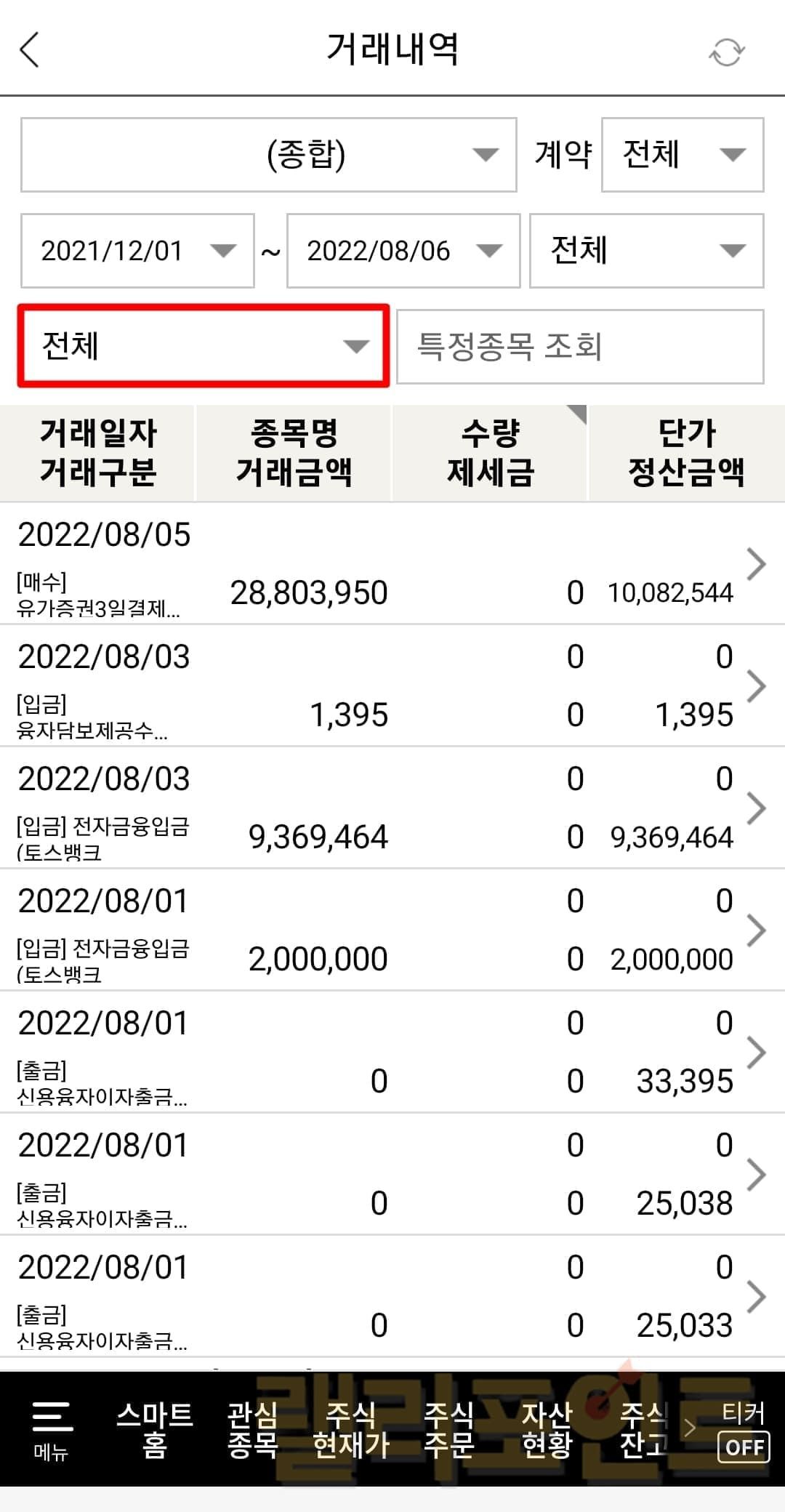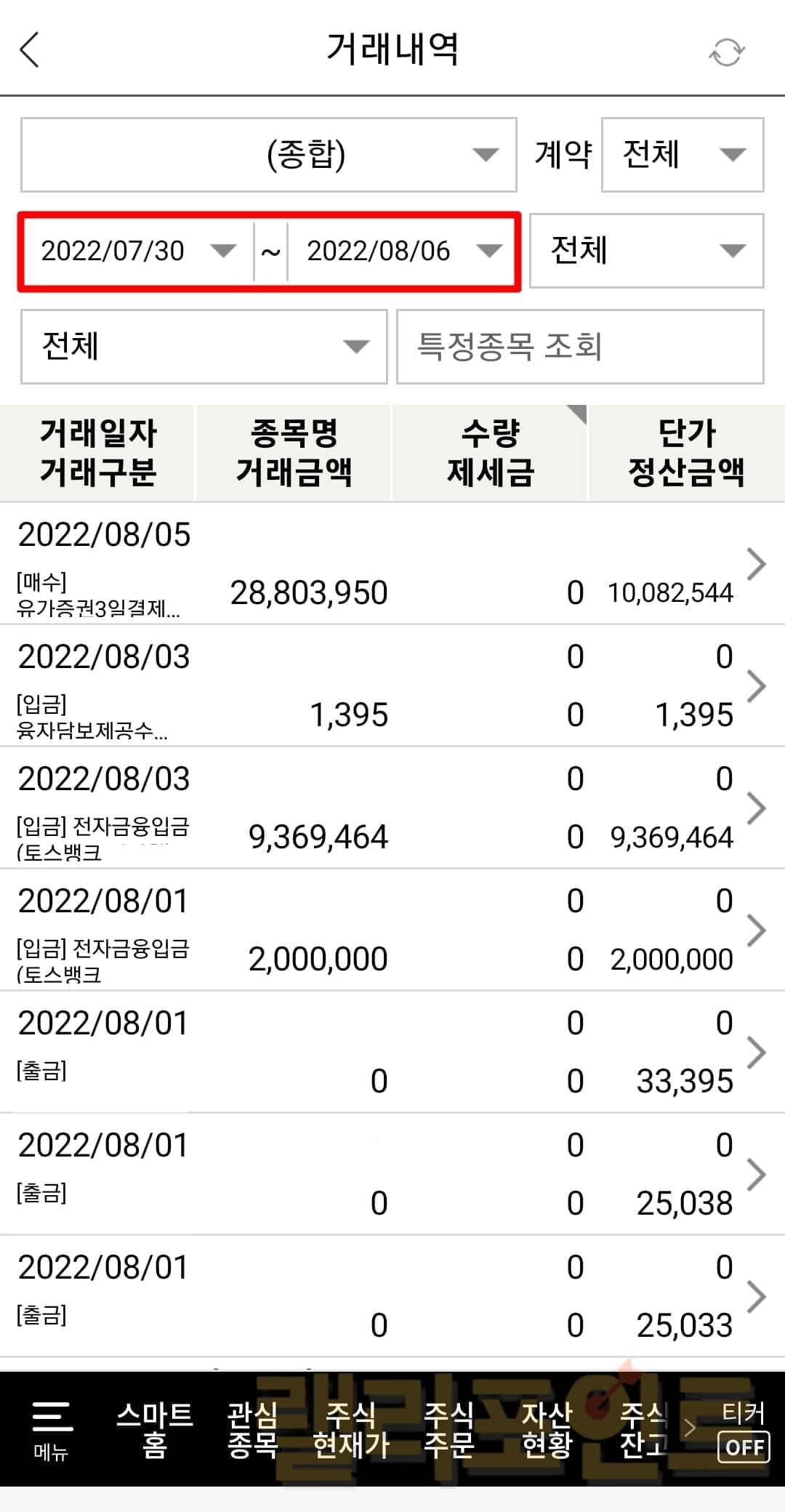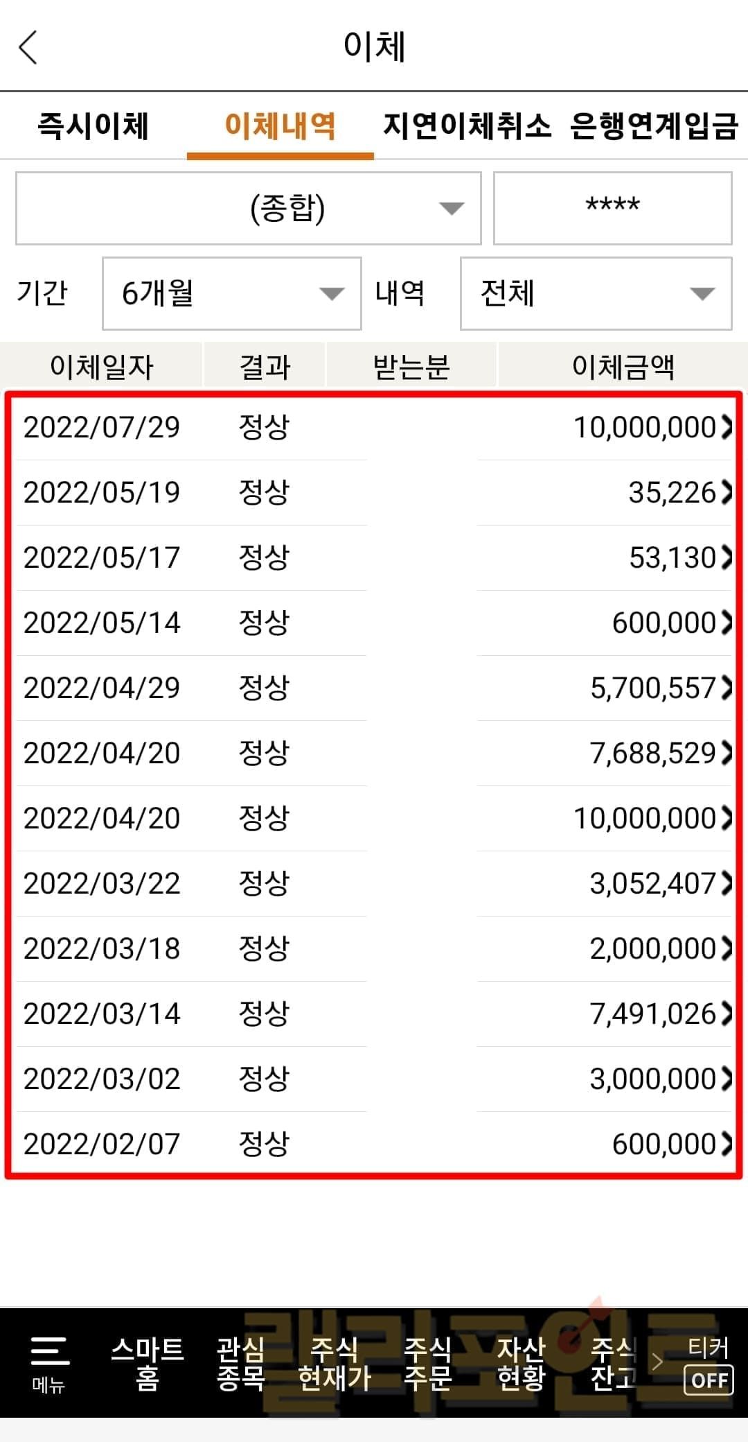 한화투자증권 계좌 이체내역만 한눈에 보는법