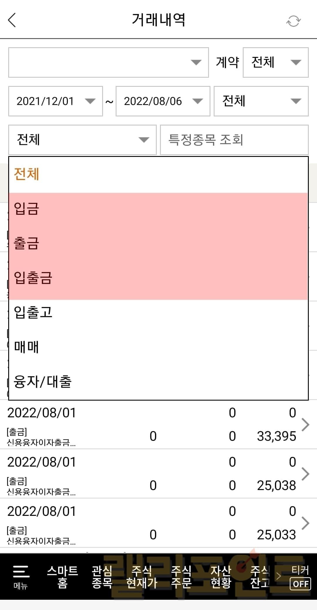 - 입출금을 선택합니다.