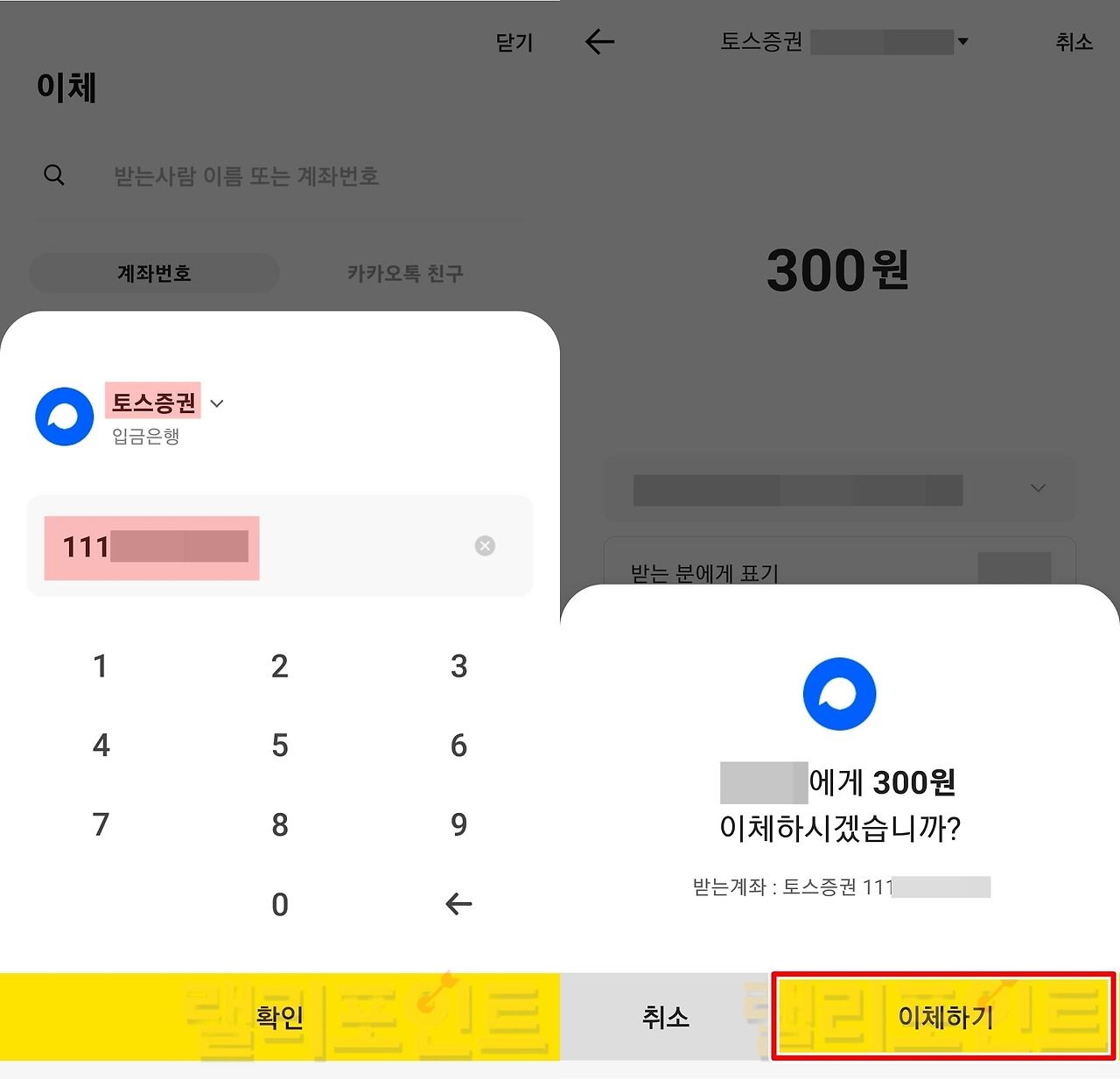 2. 토스증권 계좌번호 및 금액을 기입해서 이체합니다.