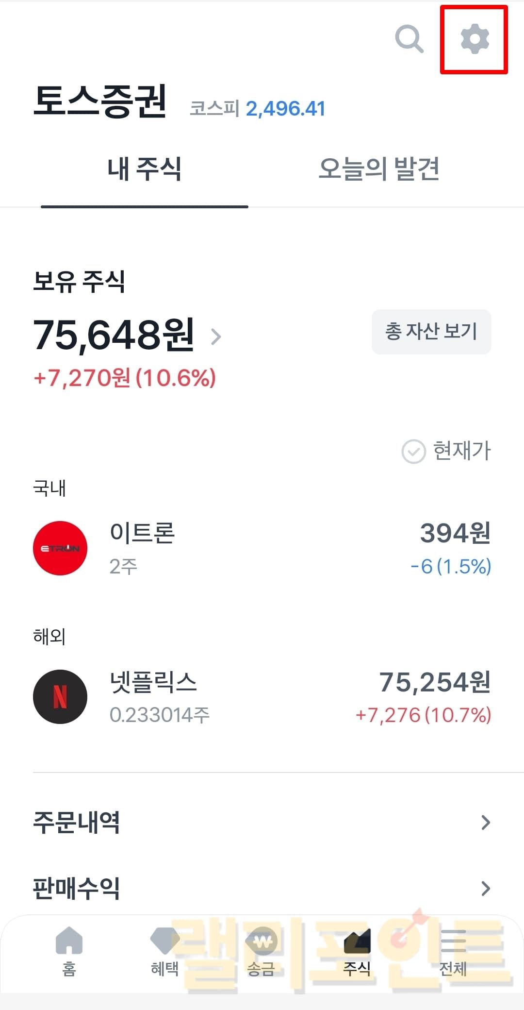 - 우측 상단 톱니바퀴 설정 버튼을 누릅니다.