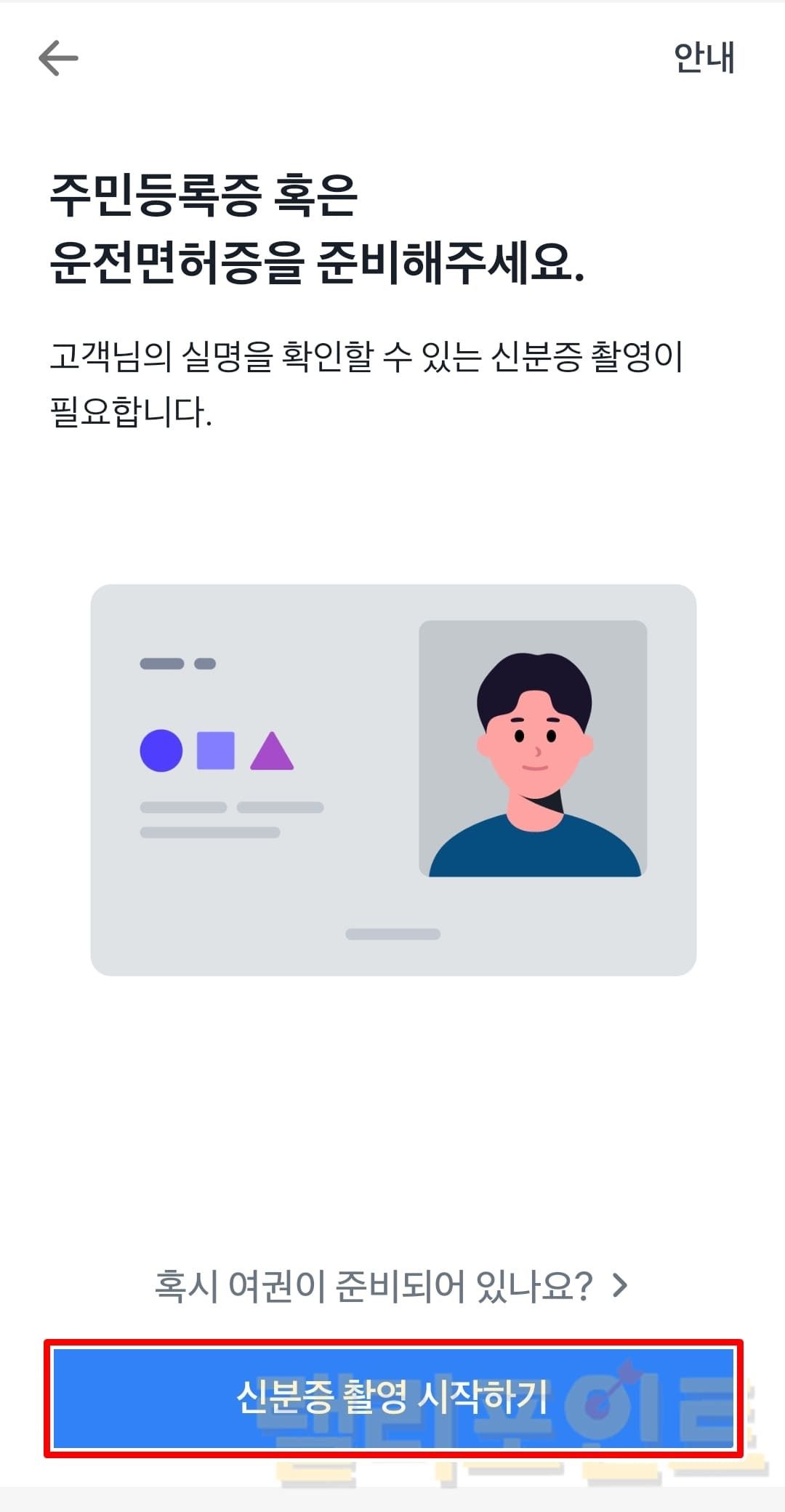 신분증 촬영 시작하기 버튼을 누릅니다.