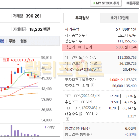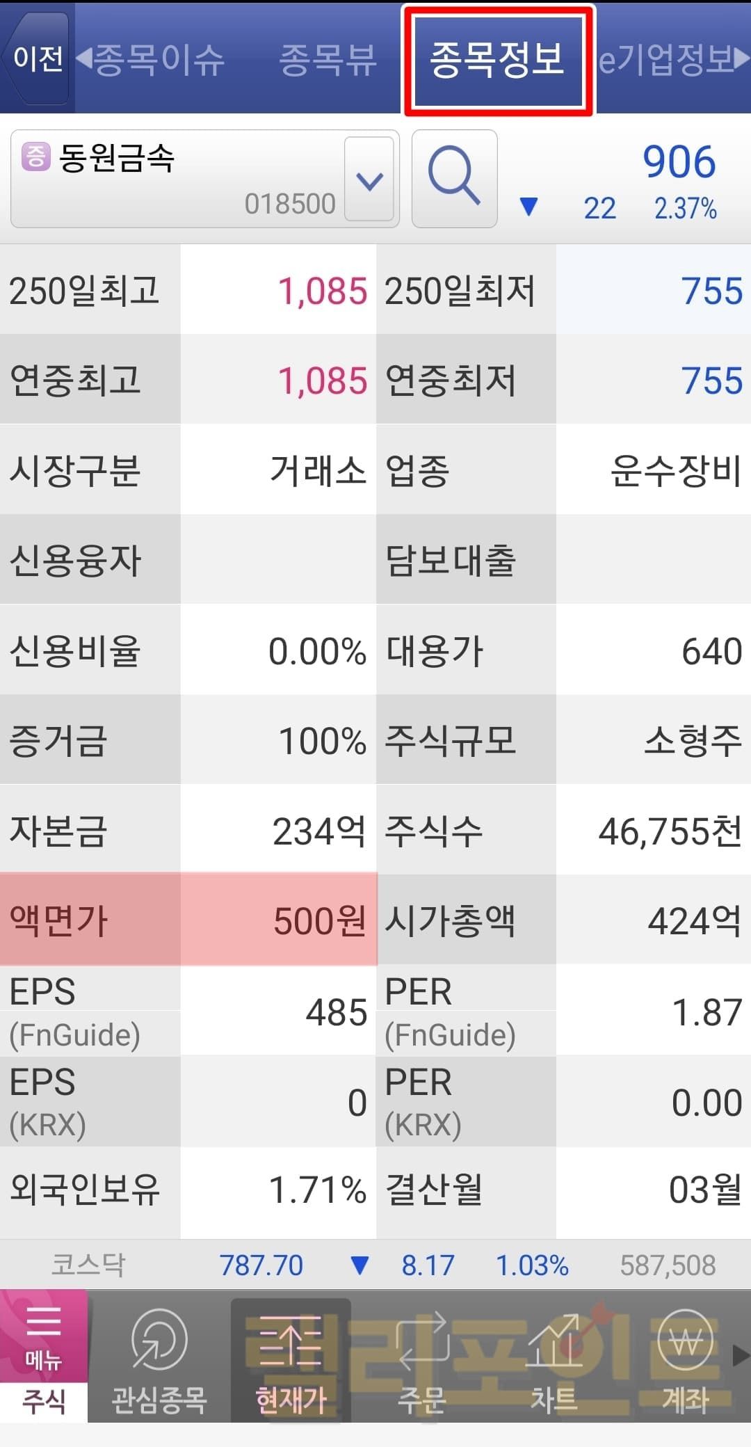 1. 우측의 투자정보에서 주식의 액면가를 확인합니다.
