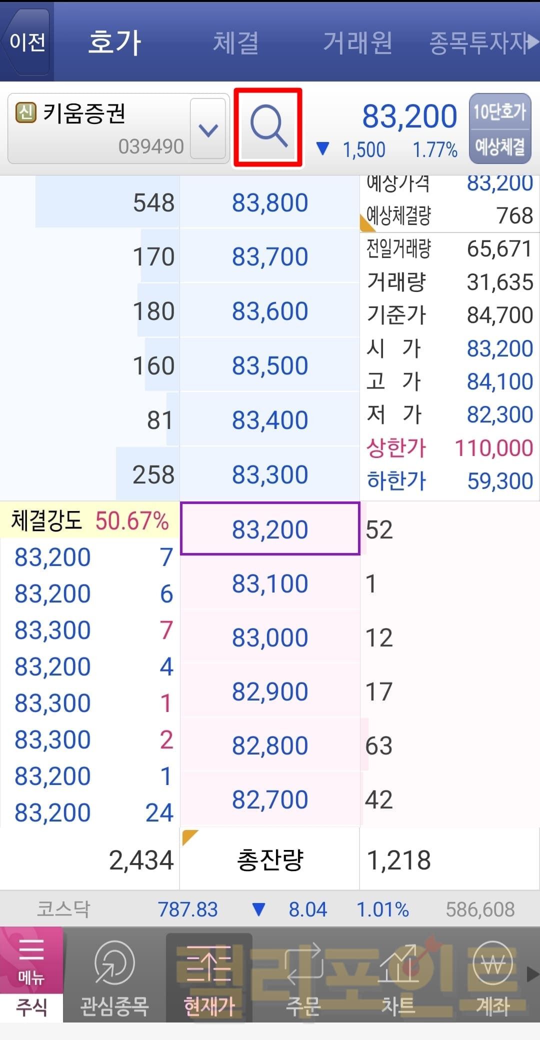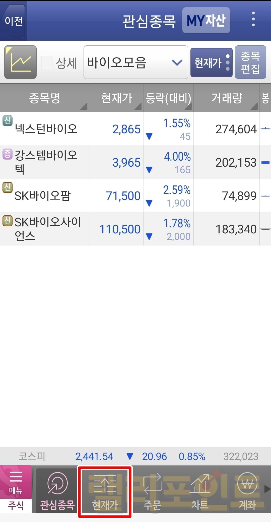 저는 키움증권 영웅문S MTS 어플을 이용하였습니다. 다른 증권사의 MTS 앱에서도 주식 액면가 확인 방법은 동일하니 참고하시길 바랍니다.