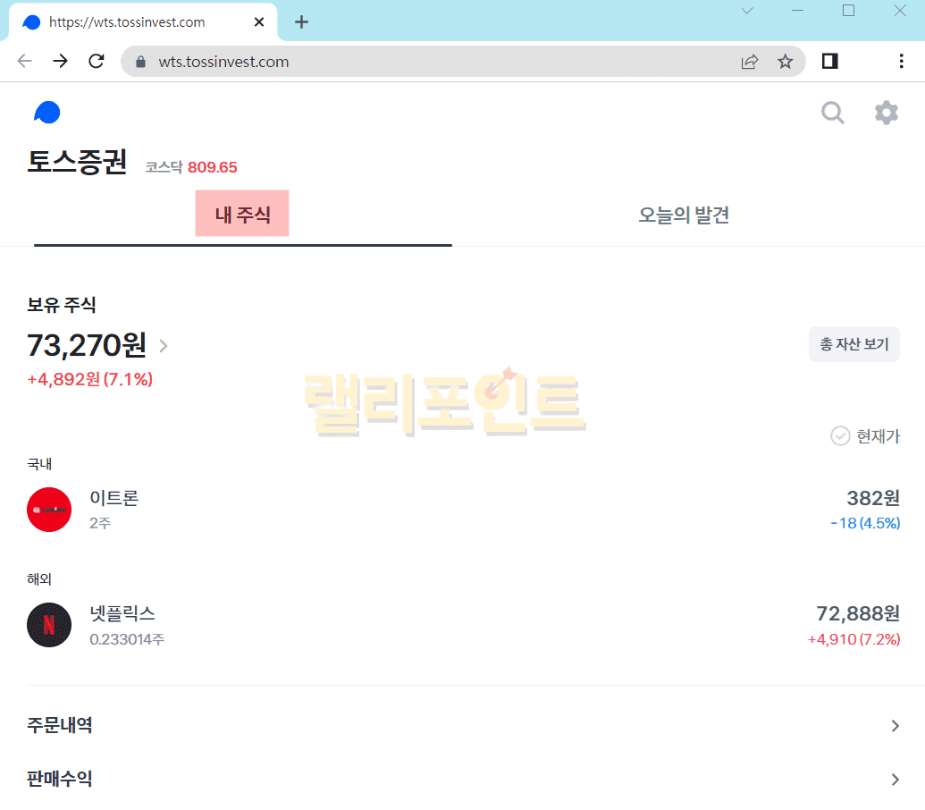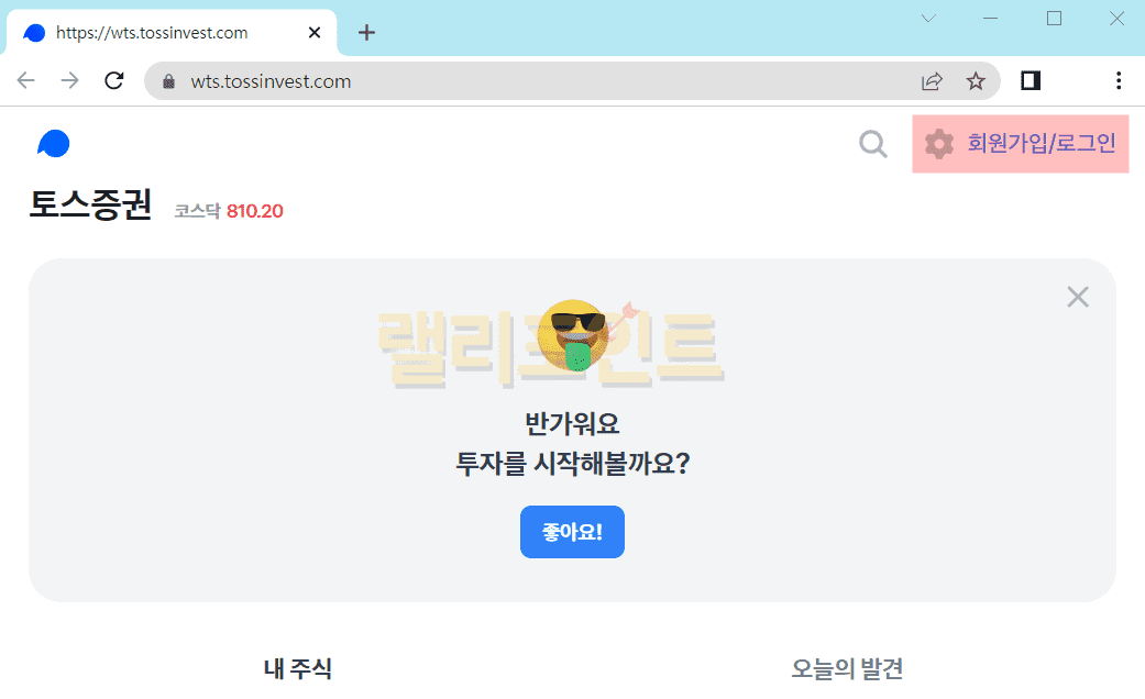 https://wts.tossinvest.com 사이트를 실행합니다.