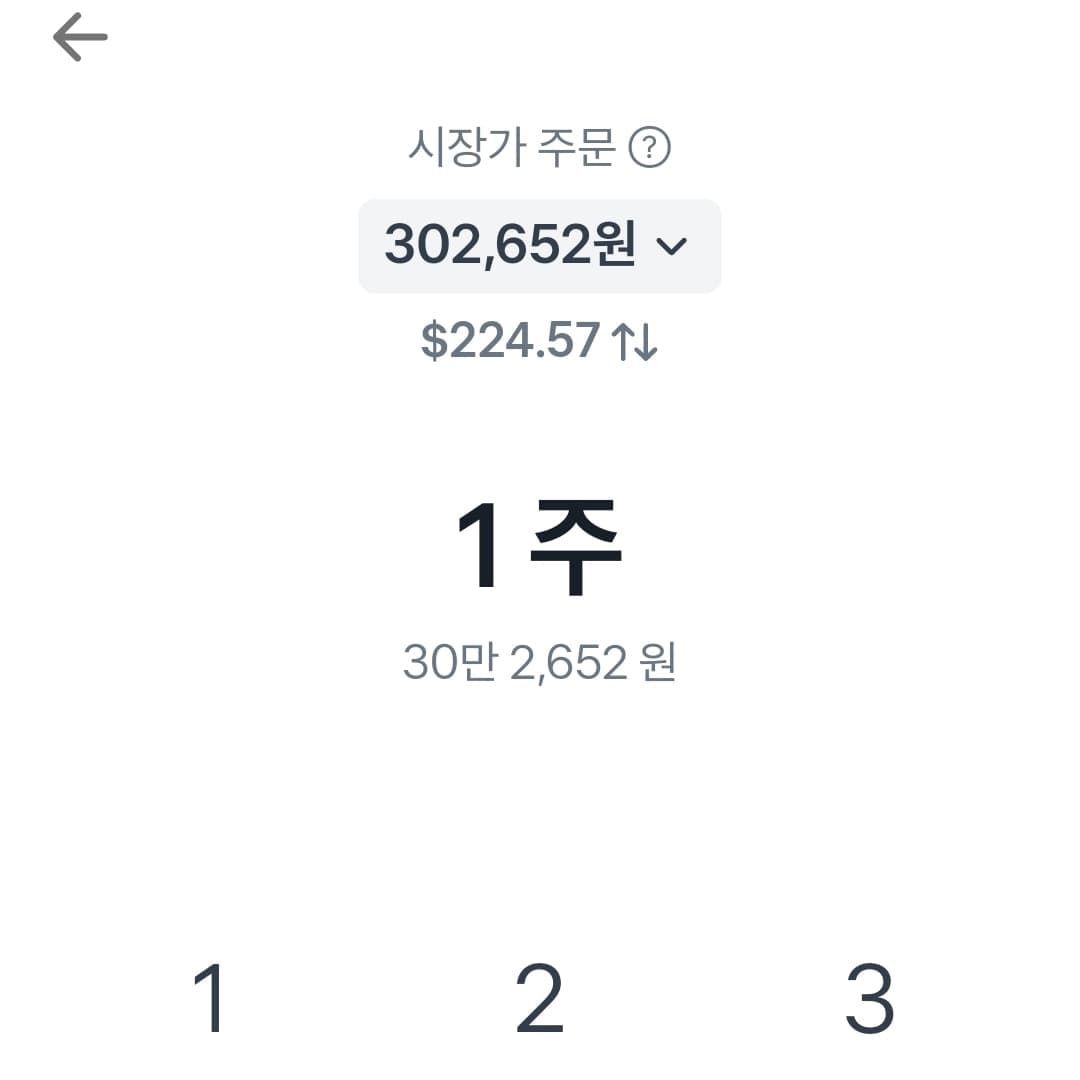 첫번째 토스증권 해외주식 사는법 TIP은 굳이 환전 과정이 필요없이 원화로 주문할 수 있다는 것입니다. 그래서 위와 같이 원화를 기입하면 자동으로 매수가능한 외화가 표시됩니다. 즉 매수시 자동환전되어 매수되는 방식이기에 투자자가 직접 귀찮은 환전과정을 거치지 않아도 됩니다.