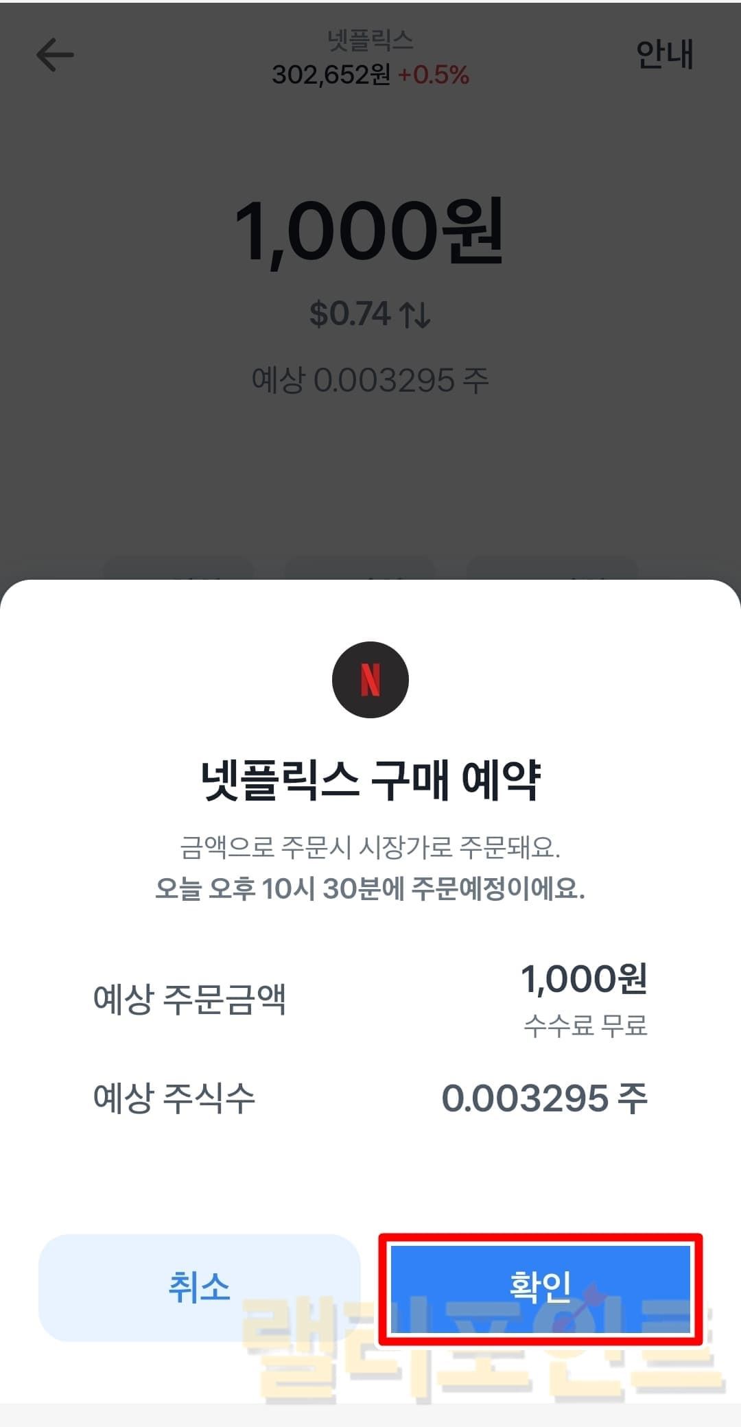 해외주식의 경우 거래가능 시간이 아닌 경우 구매 예약 주문이 됩니다. 이렇게 예약 주문시에는 확인 팝업을 보시면 몇시에 주문이 실행되는지 볼 수 있습니다.