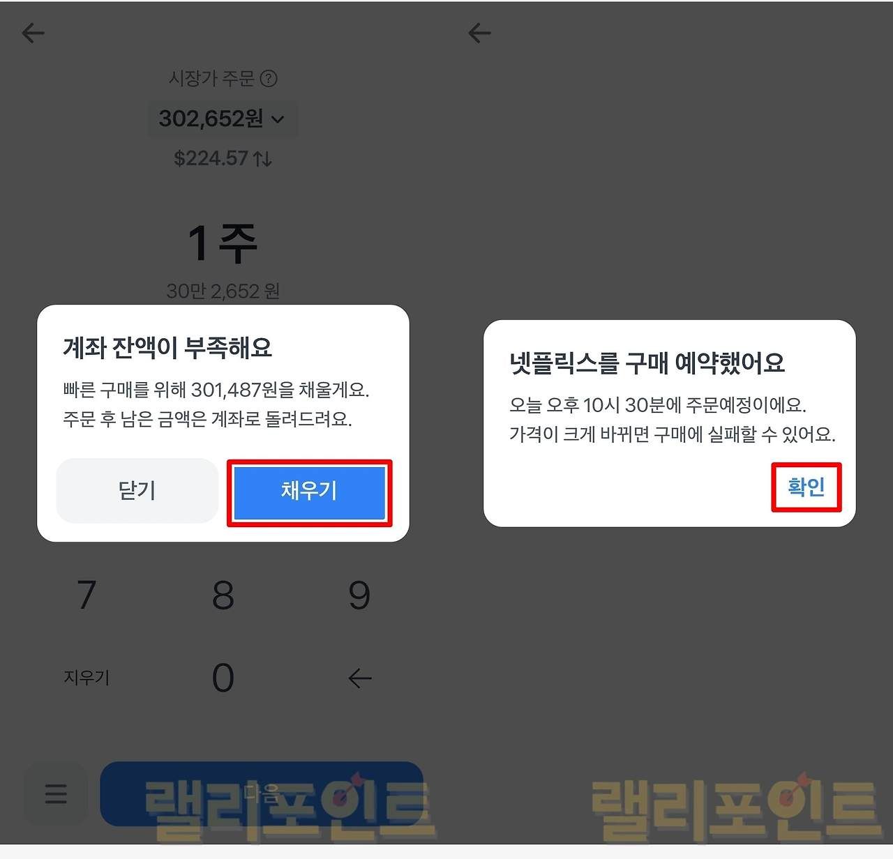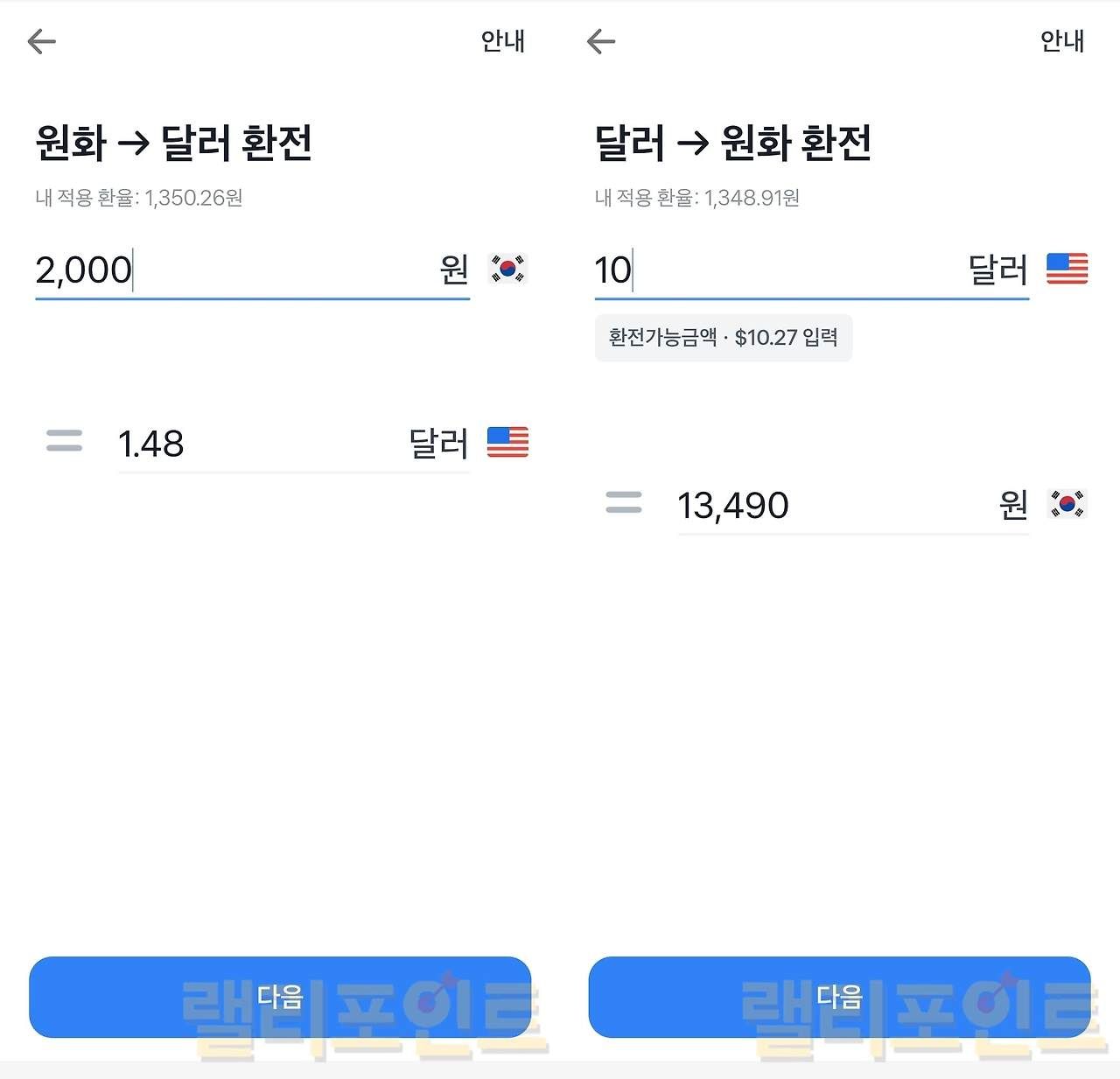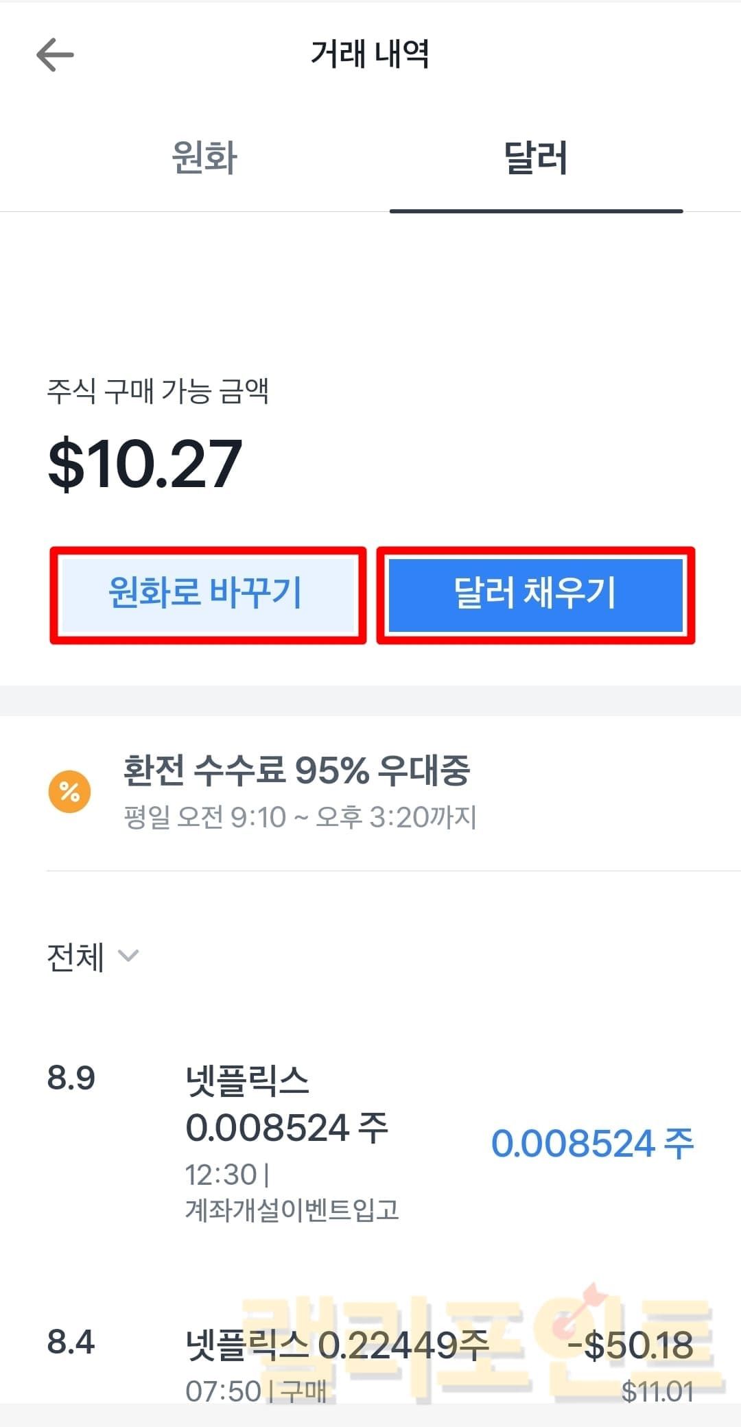 - 원화로 바꾸기 또는 달러 채우기를 클릭합니다.