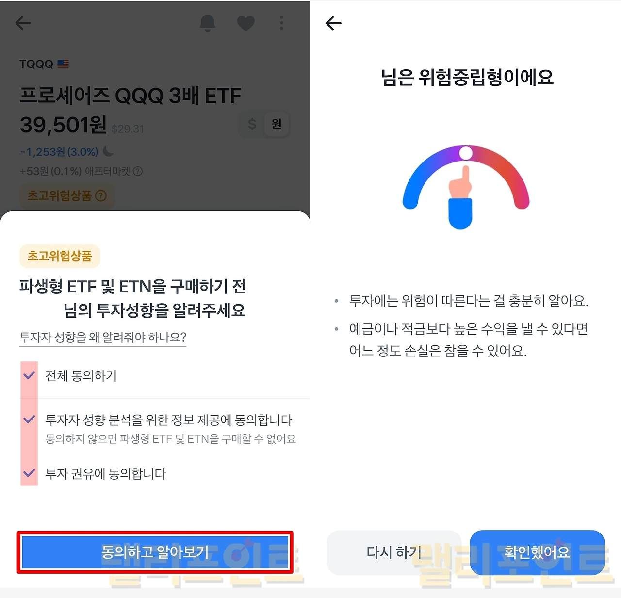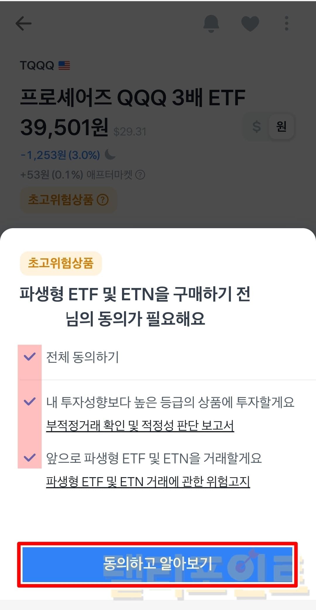 - 파생형 ETF 및 ETN 구매 동의를 진행합니다.