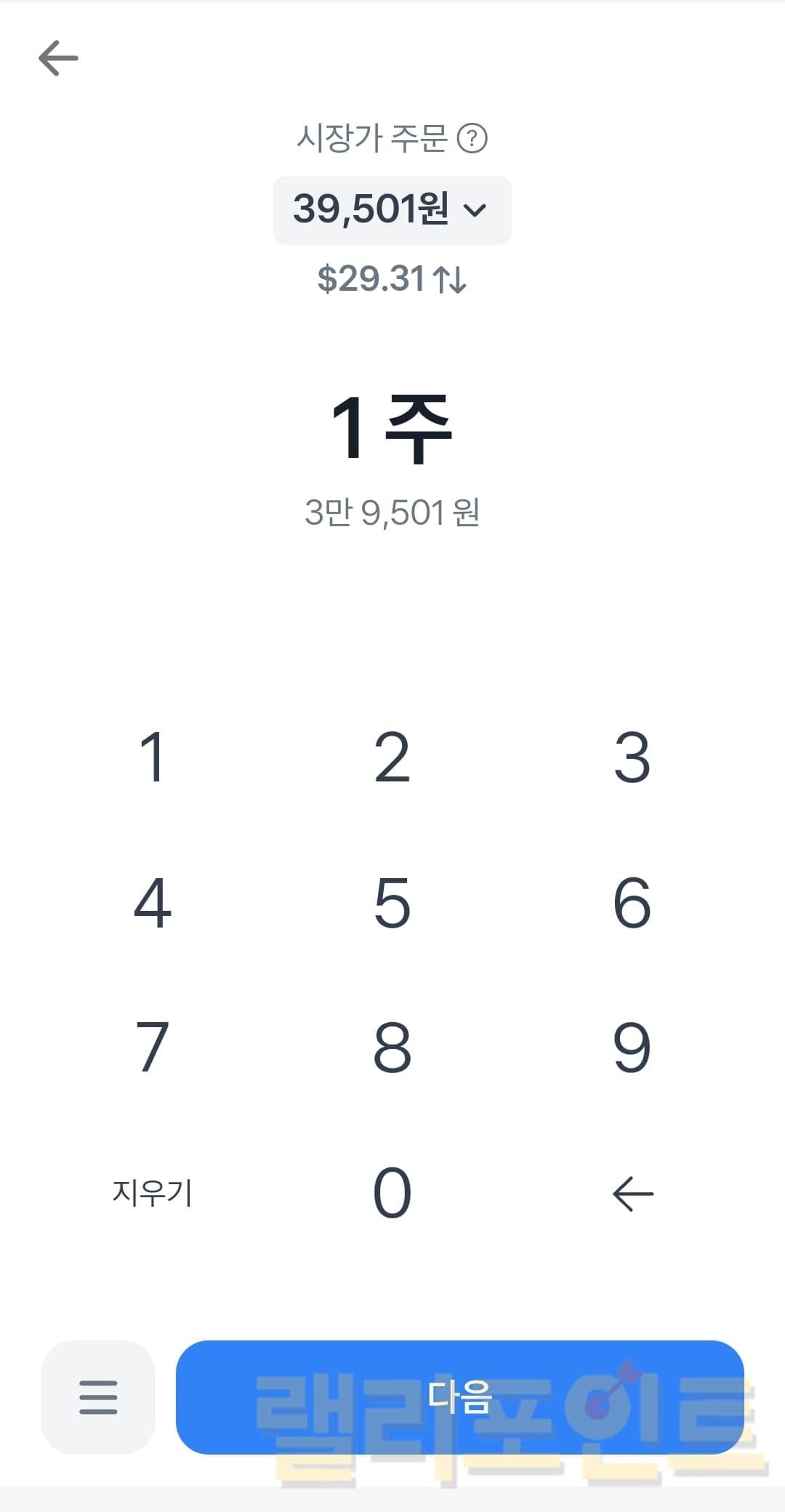 - 매수하고 싶은 수량 또는 금액을 입력합니다.