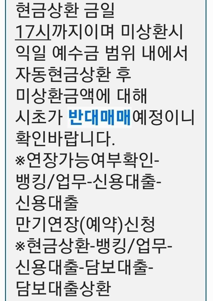 여기서 반대매매비율이란 담보비율로서 통상적으로 증권사에서는 140%로 설정되어 있습니다. 반대매매비율은 총자산/ 신용미수금 x 100 (%)로 계산되는데 즉 1억원을 신용미수로 빌렸다면 나의 자산이 1.4억원 이하일 때 반대매매로 강제 처분됨을 의미합니다. 반대매매가 이루어지게 되면 담보비율이 다시 140% 이상이 되도록 하한가로 주식을 매도합니다. 따라서 반대매매 통지를 받은 후 신용미수로 매수한 종목을 매도하여 대출금을 낮추거나, 추가 예수금을 투입하여 반대매매를 막는 것도 가능합니다.
