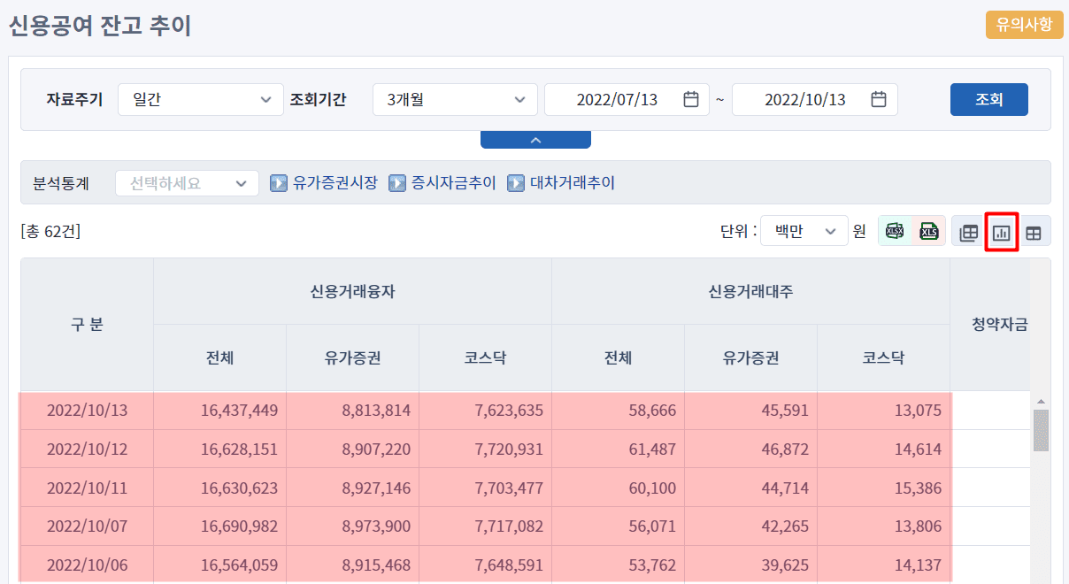 - 금융투자협회에서 전체 신용융자 추이 확인하기