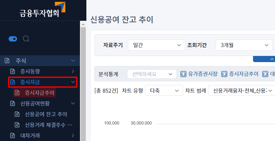 금융투자협회에서 전체 신용융자 추이 확인하기