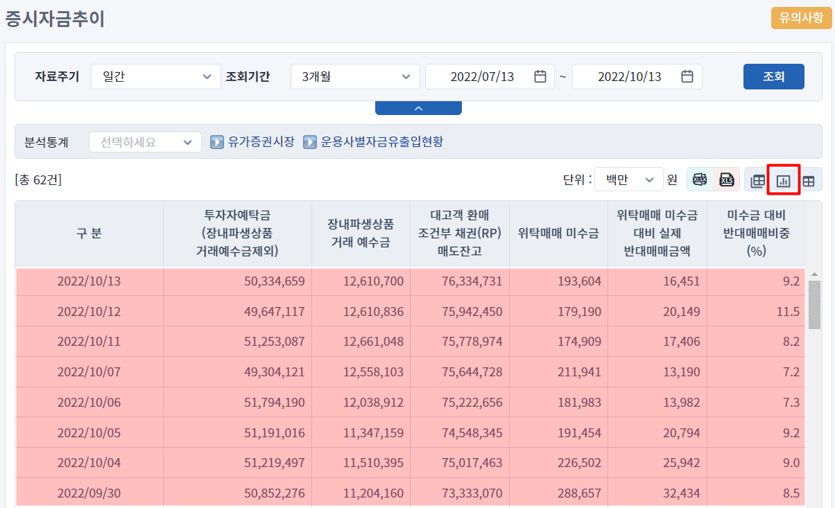- 금융투자협회에서 주식 > 증시자금 > 증시자금추이를 클릭합니다.