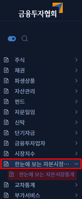 - 금융투자협회에서 한눈에 보는 자본시장통계를 클릭합니다.