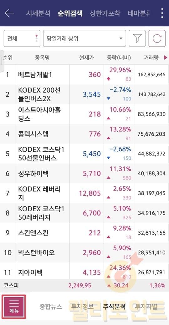 1. 스마트폰에서 키움증권 영웅문S#(신버전) 어플을 실행합니다.