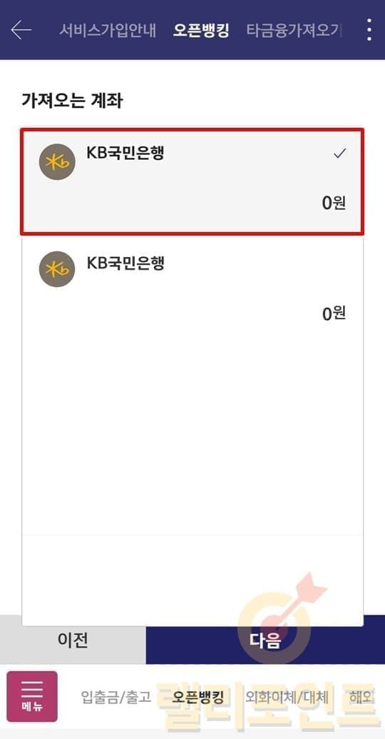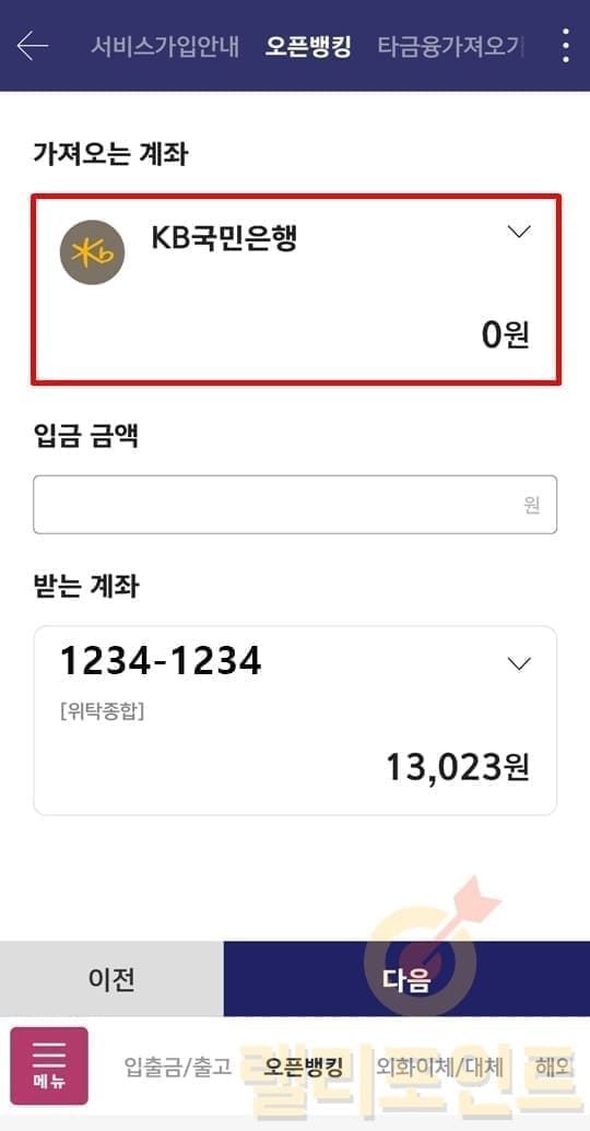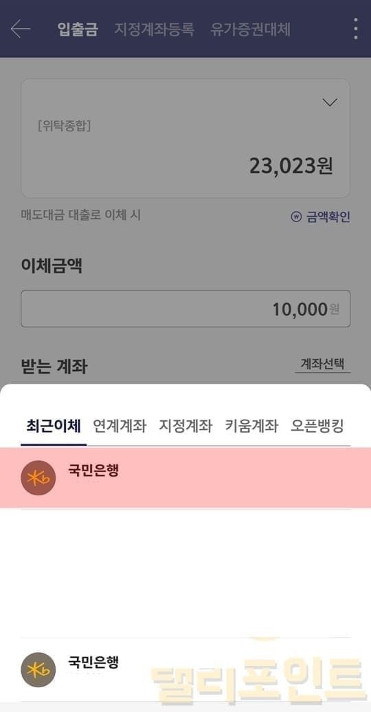 - 영웅문S#에 입금 이체할 은행계좌를 선택합니다.