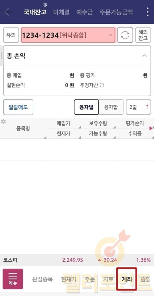 영웅문S#에서 계좌 메뉴를 클릭합니다.