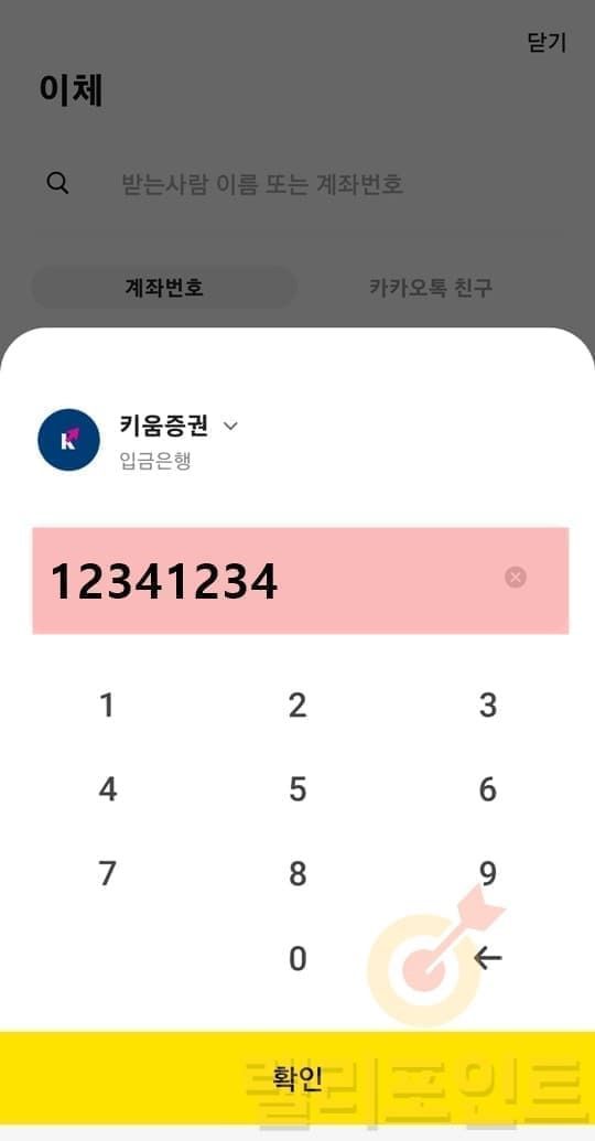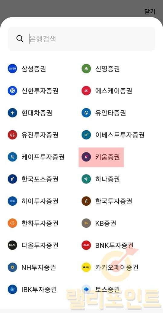 - 은행 어플에서 보낼 은행으로 키움증권을 선택합니다.