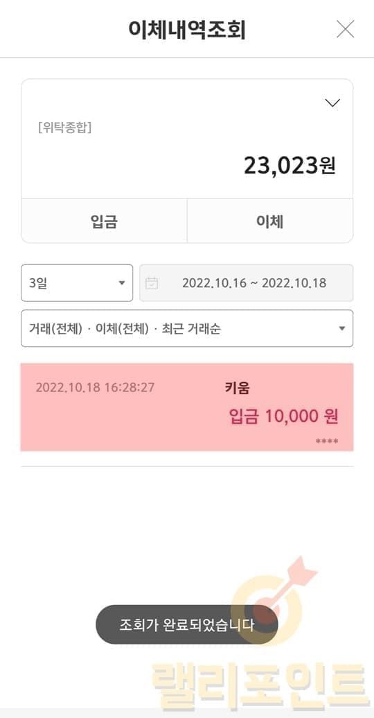 은행을 확인해보면 영웅문S# 어플에서 출금한 돈이 들어온 것을 볼 수 있습니다.