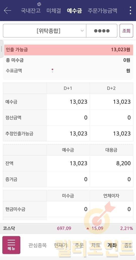 일부 계좌의 잔액은 출금 가능 금액과 차이가 있을 수 있습니다.