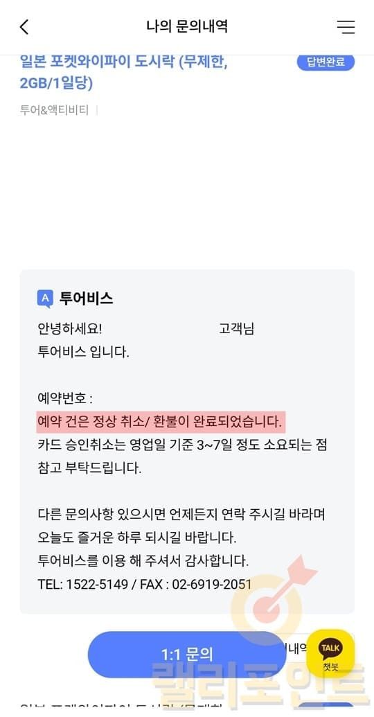 2. 투어비스 환불이 불가한 상품 고객센터 문의로 결제 취소하는 방법